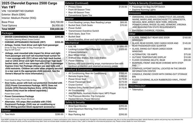 Black 2025 Chevrolet Express 2500 Work Van Cargo RWD