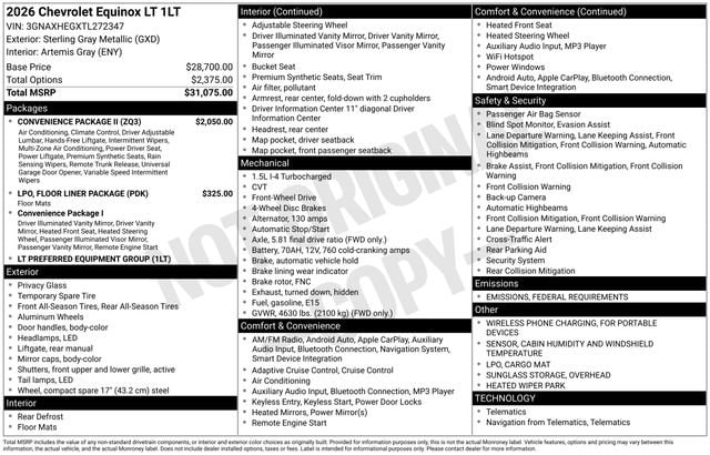 Sterling Gray Metallic 2026 Chevrolet Equinox LT FWD