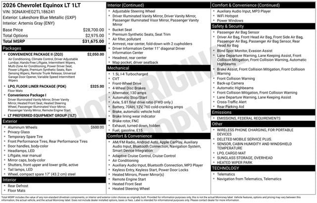 Lakeshore Blue Metallic 2026 Chevrolet Equinox LT FWD