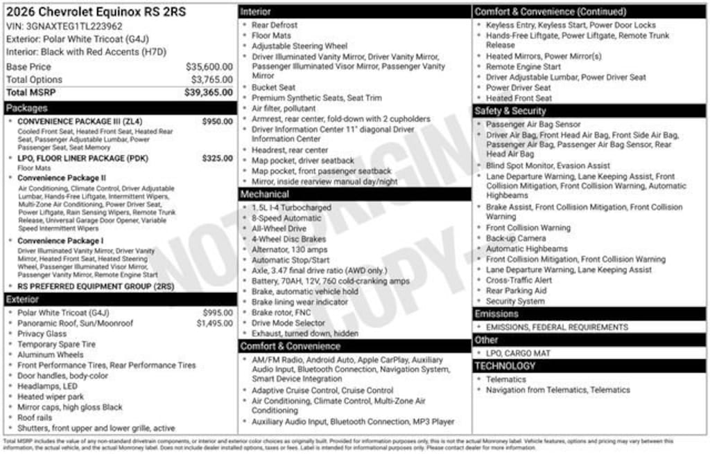 Polar White Tricoat 2026 Chevrolet Equinox RS AWD