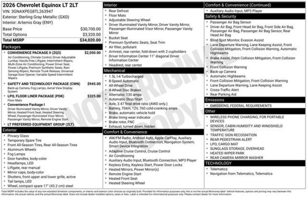 New 2026 ChevroletEquinox LT SUV Gasoline Fuel