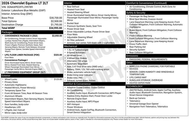 Lakeshore Blue Metallic 2026 Chevrolet Equinox LT AWD
