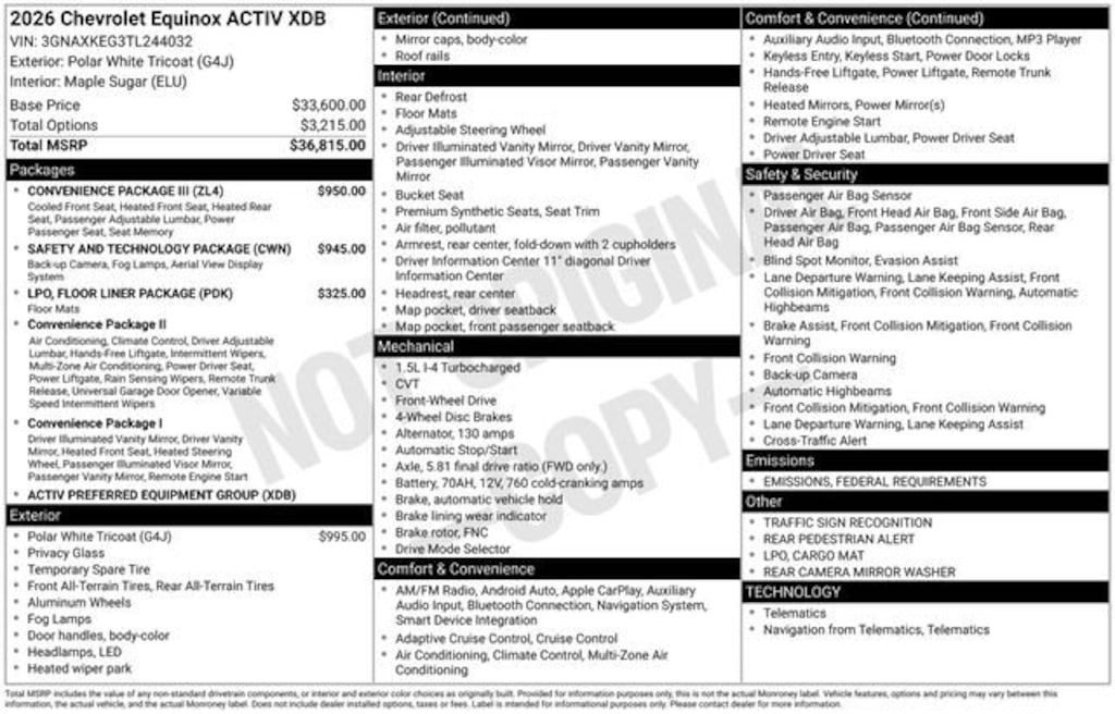 Polar White Tricoat 2026 Chevrolet Equinox ACTIV FWD