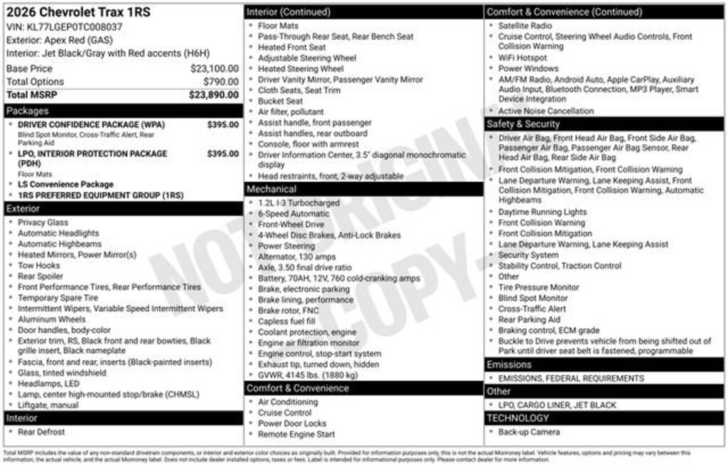 New 2026 ChevroletTrax 1RS SUV Gasoline Fuel