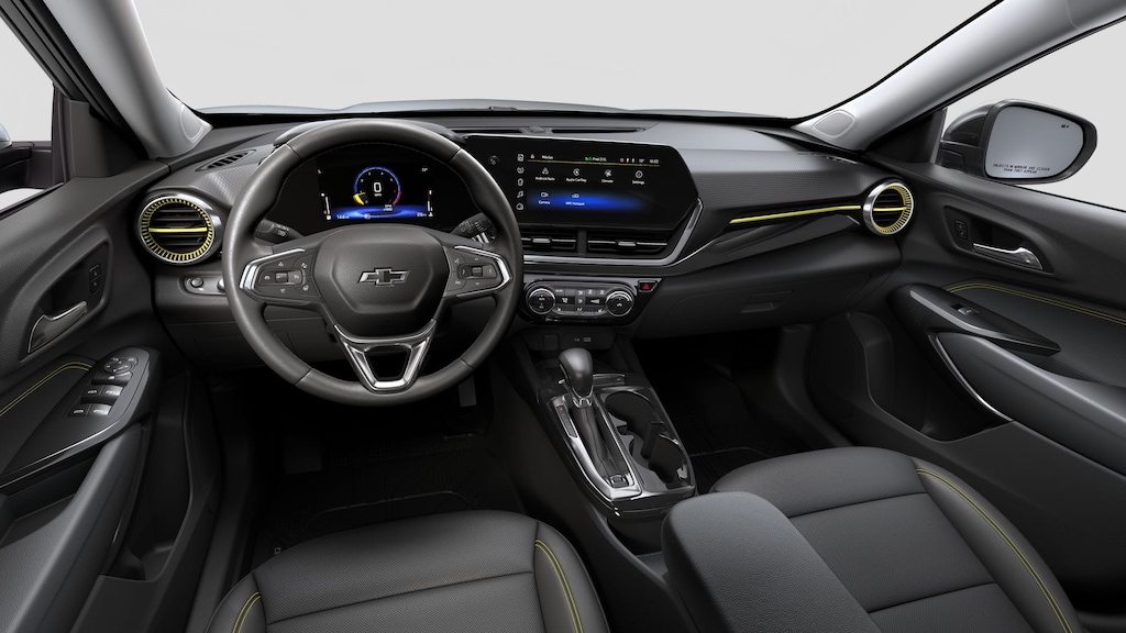 2-Way Adjustable Front Head Restraints, 2-Way Power Driver Lumbar Seat Adjuster, 3.50 Final Drive Axle Ratio, 4-Way Manual Front Passenger Seat Adjuster, 4-Wheel Disc Brakes, 6 Speakers, 6-Speaker Audio System Feature, 8-Way Power Driver Seat Adjuster, ABS brakes, Air Conditioning, Alloy wheels, AM/FM radio: SiriusXM, Auto High-beam Headlights, Automatic temperature control, Brake assist, Bumpers: body-color, Compass, Delay-off headlights, Driver door bin, Driver vanity mirror, Dual front impact airbags, Dual front side impact airbags, Electronic Stability Control, Emergency communication system: OnStar One Essentials, Evotex Seat Trim, Exterior Parking Camera Rear, Front anti-roll bar, Front Bucket Seats, Front Center Armrest, Front reading lights, Front wheel independent suspension, Fully automatic headlights, Heated door mirrors, Heated Driver and Front Passenger Seats, Heated front seats, Heated steering wheel, Illuminated entry, Leather steering wheel, Low tire pressure warning, Occupant sensing airbag, Outside temperature display, Overhead airbag, Overhead console, Panic alarm, Passenger door bin, Passenger vanity mirror, Power door mirrors, Power driver seat, Power steering, Power windows, Premium audio system: Chevrolet Infotainment 3, Radio data system, Radio: AM/FM Stereo Audio System, Rear window defroster, Rear window wiper, Remote keyless entry, Security system, SiriusXM Trial Subscription, Speed control, Split folding rear seat, Spoiler, Steering wheel mounted audio controls, Tachometer, Telescoping steering wheel, Tilt steering wheel, Traction control, Trip computer, Variably intermittent wipers, Wheels: 18 Black-Painted Aluminum, Wireless Apple CarPlay/Wireless Android Auto.
