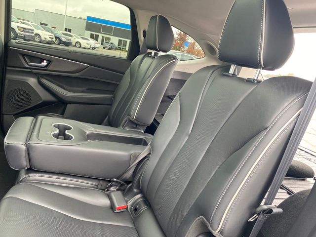 Navigation system: Acura Navigation System with 3D View, 16 Speakers, 3rd row seats: split-bench, 4-Wheel Disc Brakes, 4.17 Axle Ratio, A/V remote: CabinControl, ABS brakes, Adaptive suspension, Air Conditioning, Alloy wheels, AM/FM radio: SiriusXM, Anti-whiplash front head restraints, Apple CarPlay/Android Auto, Audio memory, Auto High-beam Headlights, Auto tilt-away steering wheel, Auto-dimming Rear-View mirror, Automatic temperature control, Brake assist, Bumpers: body-color, Compass, Delay-off headlights, Driver door bin, Driver vanity mirror, Dual front impact airbags, Dual front side impact airbags, Electronic Stability Control, Emergency communication system: AcuraLink, Four wheel independent suspension, Front anti-roll bar, Front Bucket Seats, Front Center Armrest, Front dual zone A/C, Front fog lights, Front reading lights, Fully automatic headlights, Garage door transmitter: HomeLink, Heads-Up Display, Heated & Ventilated Front Sport Seats, Heated door mirrors, Heated front seats, Heated rear seats, Heated steering wheel, HVAC memory, Illuminated entry, Knee airbag, Lane departure: Lane Keeping Assist System (LKAS) active, Leather steering wheel, Low tire pressure warning, Memory seat, Occupant sensing airbag, Outside temperature display, Overhead airbag, Overhead console, Panic alarm, Passenger door bin, Passenger vanity mirror, Perforated Premium Milano Leather Trimmed Seats, Power door mirrors, Power driver seat, Power Liftgate, Power moonroof, Power passenger seat, Power steering, Power windows, Premium audio system: Acura/ELS Studio 3D, Radio data system, Radio: ELS Studio 3D Premium Audio System, Rain sensing wipers, Rear air conditioning, Rear anti-roll bar, Rear reading lights, Rear seat center armrest, Rear window defroster, Rear window wiper, Remote keyless entry, Roof rack: rails only, Security system, Speed control, Speed-sensing steering, Speed-Sensitive Wipers, Split folding rear seat, Spoiler, Steering wheel memory, Steering wheel mounted audio controls, Tachometer, Telescoping steering wheel, Tilt steering wheel, Traction control, Trip computer, Turn signal indicator mirrors, Variably intermittent wipers, Ventilated front seats, Wheels: 20" x 9" Aluminum Alloy, Navigation system: Acura Navigation System with 3D View.