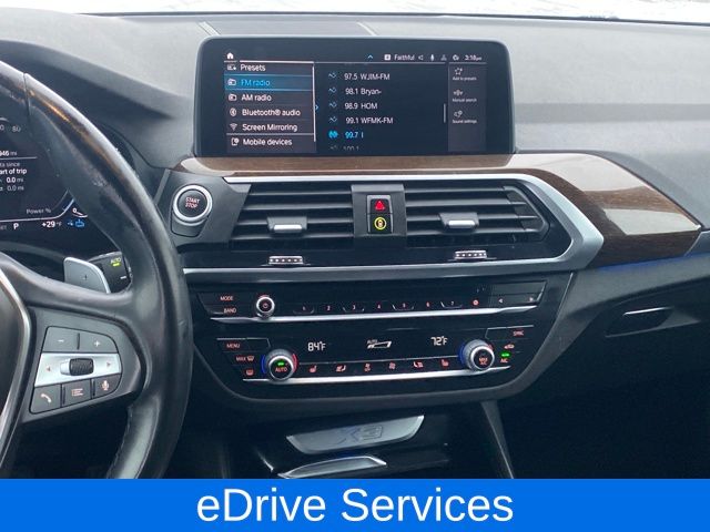 Apple CarPlay & Android Auto Compatibility, BMW TeleServices, Connected Package Pro, ConnectedDrive Services, eDrive Services, Exterior Parking Camera Rear, Navigation System, Power Liftgate, Speed control, Wheels: 18" x 7.0" Y-Spoke (Style 688), WiFi Hotspot, 12 Speakers, 3.39 Axle Ratio, 4-Wheel Disc Brakes, ABS brakes, Air Conditioning, Alloy wheels, AM/FM radio: SiriusXM with 360L, Auto-dimming door mirrors, Auto-dimming Rear-View mirror, Automatic temperature control, BMW Assist eCall, Brake assist, Bumpers: body-color, Delay-off headlights, Driver door bin, Driver vanity mirror, Dual front impact airbags, Dual front side impact airbags, Electronic Stability Control, Emergency communication system: BMW Assist eCall, Four wheel independent suspension, Front anti-roll bar, Front Bucket Seats, Front Center Armrest, Front dual zone A/C, Front fog lights, Front reading lights, Fully automatic headlights, Garage door transmitter, Genuine wood dashboard insert, Genuine wood door panel insert, Heated door mirrors, Hi-Fi Sound System, Illuminated entry, Increased Top Speed Limiter, Knee airbag, Leather Shift Knob, Live Cockpit Pro w/Navigation, Low tire pressure warning, Memory seat, Occupant sensing airbag, Outside temperature display, Overhead airbag, Panic alarm, Passenger door bin, Passenger vanity mirror, Power door mirrors, Power driver seat, Power Front Seats, Power passenger seat, Power steering, Power windows, Radio Control US, Radio data system, Radio: AM/FM/HD Stereo, Rain sensing wipers, Rear air conditioning, Rear anti-roll bar, Rear reading lights, Rear seat center armrest, Rear window defroster, Rear window wiper, Remote keyless entry, Roof rack: rails only, Security system, SensaTec Upholstery, SiriusXM Satellite Radio, SiriusXM w/360L, Speed-sensing steering, Speed-Sensitive Wipers, Split folding rear seat, Spoiler, Sport Bucket Seats, Sport steering wheel, Steering wheel mounted audio controls, Tachometer, Telescoping steering wheel, Tilt steering wheel, Traction control, Trip computer, Turn signal indicator mirrors, Variably intermittent wipers, Wheels: 19" x 7.5" M Double Spoke (Style 698M), Apple CarPlay & Android Auto Compatibility, BMW TeleServices, Connected Package Pro, ConnectedDrive Services, eDrive Services, Exterior Parking Camera Rear, Navigation System, Power Liftgate, Speed control, Wheels: 18" x 7.0" Y-Spoke (Style 688), WiFi Hotspot.