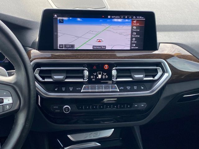 Navigation System, 12 Speakers, 3.385 Axle Ratio, 4-Wheel Disc Brakes, ABS brakes, Air Conditioning, Alloy wheels, AM/FM Radio, AM/FM radio: SiriusXM with 360L, Apple CarPlay & Android Auto Compatibility, Auto High-beam Headlights, Auto-dimming door mirrors, Auto-dimming Rear-View mirror, Automatic temperature control, BMW Assist eCall, BMW TeleServices, Brake assist, Bumpers: body-color, Connected Package Pro, ConnectedDrive Services, Delay-off headlights, Driver door bin, Driver vanity mirror, Dual front impact airbags, Dual front side impact airbags, Electronic Stability Control, Emergency communication system: BMW Assist eCall, Enhanced Bluetooth, Exterior Parking Camera Rear, Four wheel independent suspension, Front anti-roll bar, Front Bucket Seats, Front Center Armrest, Front dual zone A/C, Front reading lights, Fully automatic headlights, Garage door transmitter, Genuine wood dashboard insert, Genuine wood door panel insert, Heated door mirrors, Hi-Fi Sound System, Illuminated entry, Knee airbag, Low tire pressure warning, Memory seat, Navigation, Occupant sensing airbag, Outside temperature display, Overhead airbag, Panic alarm, Passenger door bin, Passenger vanity mirror, Perforated SensaTec Upholstery, Power door mirrors, Power driver seat, Power Front Seats, Power Liftgate, Power passenger seat, Power steering, Power windows, Radio data system, Rain sensing wipers, Rear air conditioning, Rear anti-roll bar, Rear reading lights, Rear seat center armrest, Rear window defroster, Rear window wiper, Remote keyless entry, Roof rack: rails only, Security system, SiriusXM w/360L, Speed control, Speed-sensing steering, Speed-Sensitive Wipers, Split folding rear seat, Spoiler, Sport Seats, Sport steering wheel, Steering wheel mounted audio controls, Tachometer, Telescoping steering wheel, Tilt steering wheel, Traction control, Trip computer, Turn signal indicator mirrors, Variably intermittent wipers, Wheels: 19" x 7.5" Y-Spoke (Style 693), WiFi Hotspot, Navigation System.