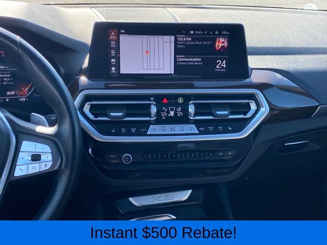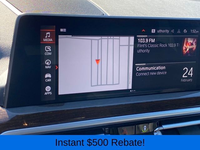 12 Speakers, 3.385 Axle Ratio, 4-Wheel Disc Brakes, ABS brakes, Air Conditioning, Alloy wheels, AM/FM Radio, AM/FM radio: SiriusXM, Apple CarPlay & Android Auto Compatibility, Auto High-beam Headlights, Auto-dimming door mirrors, Auto-dimming Rear-View mirror, Automatic temperature control, BMW Assist eCall, BMW TeleServices, Brake assist, Bumpers: body-color, Connected Package Pro, ConnectedDrive Services, Delay-off headlights, Driver door bin, Driver vanity mirror, Dual front impact airbags, Dual front side impact airbags, Electronic Stability Control, Emergency communication system: BMW Assist eCall, Enhanced USB & Bluetooth w/Smartphone Integration, Exterior Parking Camera Rear, Four wheel independent suspension, Front anti-roll bar, Front Bucket Seats, Front Center Armrest, Front dual zone A/C, Front reading lights, Fully automatic headlights, Garage door transmitter, Genuine wood dashboard insert, Genuine wood door panel insert, Heated door mirrors, Hi-Fi Sound System, Illuminated entry, Knee airbag, Low tire pressure warning, Memory seat, Navigation, Navigation System, Occupant sensing airbag, Outside temperature display, Overhead airbag, Panic alarm, Passenger door bin, Passenger vanity mirror, Perforated SensaTec Upholstery, Power door mirrors, Power driver seat, Power Front Seats, Power Liftgate, Power passenger seat, Power steering, Power windows, Radio data system, Rain sensing wipers, Rear air conditioning, Rear anti-roll bar, Rear reading lights, Rear seat center armrest, Rear window defroster, Rear window wiper, Remote keyless entry, Security system, SiriusXM Satellite Radio, Speed control, Speed-sensing steering, Speed-Sensitive Wipers, Split folding rear seat, Spoiler, Sport Seats, Sport steering wheel, Steering wheel mounted audio controls, Tachometer, Telescoping steering wheel, Tilt steering wheel, Traction control, Trip computer, Turn signal indicator mirrors, Variably intermittent wipers, Wheels: 19" x 7.5" Y-Spoke (Style 693), WiFi Hotspot.