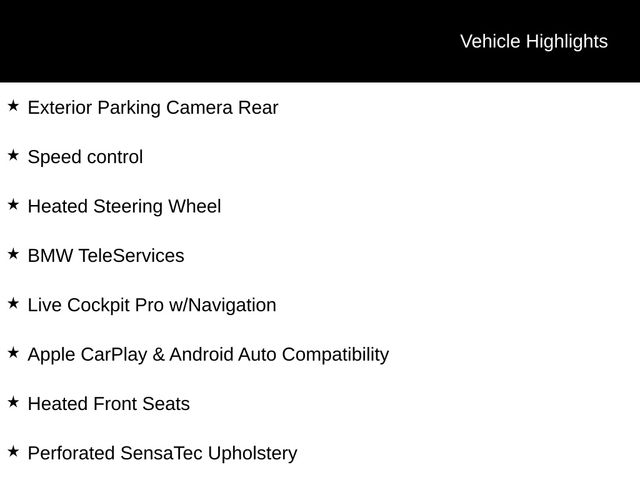 The X3 is packed with an impressive array of advanced features, including a state-of-the-art navigation system, a high-fidelity sound system, and a head-up display that keeps vital information in your line of sight. The panoramic moonroof and heated front seats add to the overall comfort and ambiance, while the Lumbar Support and Exterior Parking Camera Rear provide added convenience and confidence behind the wheel.