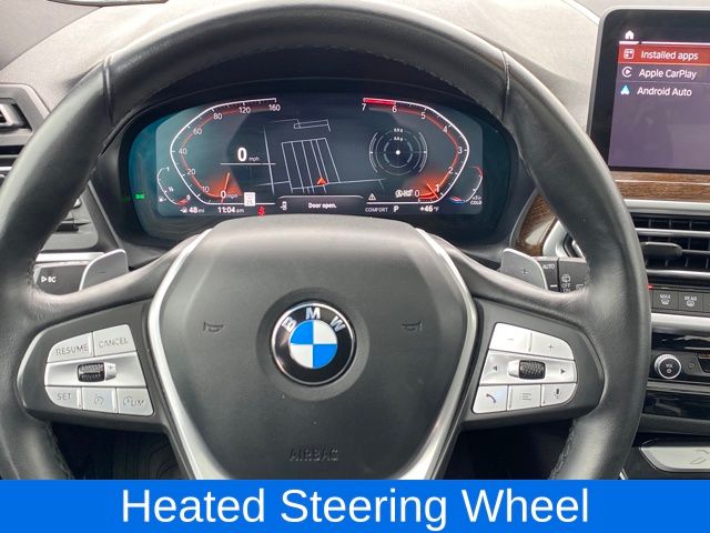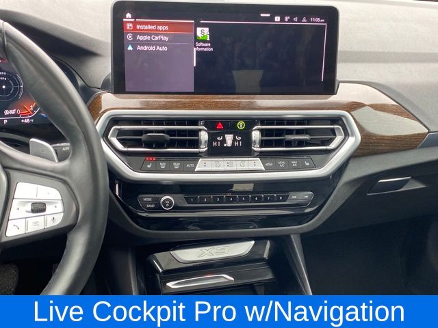 Head-Up Display, Heated Front Seats, Heated Steering Wheel, Live Cockpit Pro w/Navigation, Lumbar Support, Navigation System, Panoramic Moonroof, Premium Package, 12 Speakers, 3.385 Axle Ratio, 4-Wheel Disc Brakes, ABS brakes, Air Conditioning, Alloy wheels, AM/FM Radio, AM/FM radio: SiriusXM, Apple CarPlay & Android Auto Compatibility, Auto High-beam Headlights, Auto-dimming door mirrors, Auto-dimming Rear-View mirror, Automatic temperature control, BMW Assist eCall, BMW TeleServices, Brake assist, Bumpers: body-color, Connected Package Pro, ConnectedDrive Services, Delay-off headlights, Driver door bin, Driver vanity mirror, Dual front impact airbags, Dual front side impact airbags, Electronic Stability Control, Emergency communication system: BMW Assist eCall, Enhanced USB & Bluetooth w/Smartphone Integration, Exterior Parking Camera Rear, Four wheel independent suspension, Front anti-roll bar, Front Bucket Seats, Front Center Armrest, Front dual zone A/C, Front reading lights, Fully automatic headlights, Garage door transmitter, Genuine wood dashboard insert, Genuine wood door panel insert, Heated door mirrors, Hi-Fi Sound System, Illuminated entry, Knee airbag, Leather steering wheel, Low tire pressure warning, Memory seat, Navigation, Occupant sensing airbag, Outside temperature display, Overhead airbag, Panic alarm, Passenger door bin, Passenger vanity mirror, Perforated SensaTec Upholstery, Power door mirrors, Power driver seat, Power Front Seats, Power Liftgate, Power passenger seat, Power steering, Power windows, Radio data system, Rain sensing wipers, Rear air conditioning, Rear anti-roll bar, Rear reading lights, Rear seat center armrest, Rear window defroster, Rear window wiper, Remote keyless entry, Security system, SiriusXM w/360L & 1 Yr Platinum Plan Subscription, Speed control, Speed-sensing steering, Speed-Sensitive Wipers, Split folding rear seat, Spoiler, Sport Seats, Sport steering wheel, Steering wheel mounted audio controls, Tachometer, Telescoping steering wheel, Tilt steering wheel, Traction control, Trip computer, Turn signal indicator mirrors, Variably intermittent wipers, Wheels: 19" x 7.5" Y-Spoke (Style 693), WiFi Hotspot, Head-Up Display, Heated Front Seats, Heated Steering Wheel, Live Cockpit Pro w/Navigation, Lumbar Support, Navigation System, Panoramic Moonroof, Premium Package.