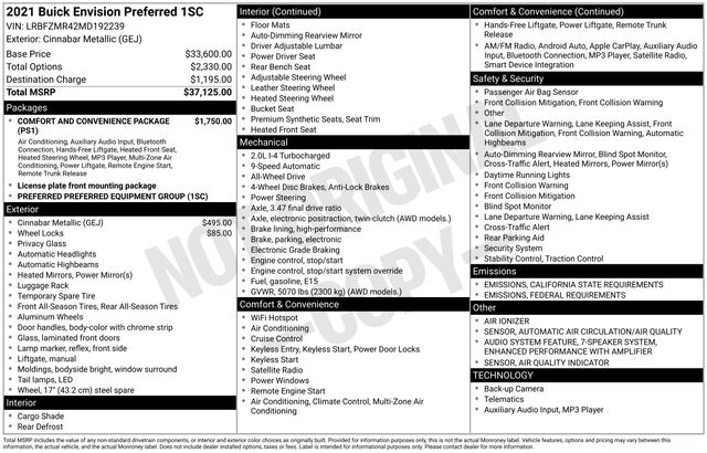 This 2021 Buick Envision Preferred is equipped with a impressive list of features that will enhance your driving experience: