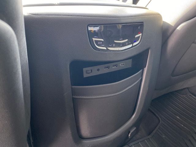 Driver Awareness Package, Forward Collision Alert, IntelliBeam Headlamps, Lane Change Alert, Lane Keep Assist w/Lane Departure Warning, Low Speed Forward Automatic Braking, Navigation System, Rear Cross-Traffic Alert, Side Blind Zone Alert, 12-Way Power Front Passenger Seat Adjuster, 16 Speakers, 2-Position Memory For Driver's Seat Adjuster, 3.23 Axle Ratio, 3rd row seats: split-bench, 4-Wheel Disc Brakes, ABS brakes, Adaptive suspension, Adjustable pedals, Air Conditioning, All-Weather 1st, 2nd & 3rd Row Floor Mats (LPO), All-Weather Cargo Mat (LPO), Alloy wheels, AM/FM radio: SiriusXM, Apple CarPlay, Auto High-beam Headlights, Auto tilt-away steering wheel, Auto-dimming door mirrors, Auto-leveling suspension, Automatic temperature control, Bodyside moldings, Bose Centerpoint Surround Sound System, Brake assist, Bumpers: body-color, CD player, Compass, Delay-off headlights, Driver door bin, Driver vanity mirror, Dual front impact airbags, Dual front side impact airbags, DVD-Audio, Electronic Stability Control, Emergency communication system: OnStar Protection, Exterior Parking Camera Rear, Front anti-roll bar, Front Bucket Seats, Front Center Armrest w/Storage, Front dual zone A/C, Front reading lights, Front wheel independent suspension, Fully automatic headlights, Garage door transmitter, HD Radio, Heads-Up Display, Heated & Cooled Front Bucket Seats, Heated door mirrors, Heated front seats, Heated rear seats, Heated steering wheel, Illuminated entry, Inclination Sensor, Interior Protection Package (LPO), Leather Seating Surfaces, Leather Shift Knob, Leather steering wheel, Low tire pressure warning, Magnetic Ride Control Suspension, Memory seat, NavTraffic, Occupant sensing airbag, Outside temperature display, Overhead airbag, Overhead console, Panic alarm, Passenger door bin, Passenger vanity mirror, Pedal memory, Power door mirrors, Power driver seat, Power Liftgate, Power moonroof, Power passenger seat, Power steering, Power Tilt-Sliding Sunroof w/Express-Open/Close, Power windows, Preferred Equipment Group 1SB, Radio data system, Radio: Cadillac CUE Info/Media Ctrl Sys w/Embd Nav, Rain sensing wipers, Rear air conditioning, Rear anti-roll bar, Rear audio controls, Rear Camera Mirror, Rear Camera Washer, Rear reading lights, Rear Seat Entertainment System, Rear window defroster, Rear window wiper, Reconfigurable 4-Color Head-Up Display, Remote keyless entry, Roof rack: rails only, Second Row Bucket Seats, Security system, Single Slot CD/MP3 Player, SiriusXM Satellite Radio, Speed control, Split folding rear seat, Spoiler, Steering wheel memory, Steering wheel mounted audio controls, Tachometer, Telescoping steering wheel, Theft-Deterrent Alarm System, Theft-Deterrent Package, Tilt steering wheel, Traction control, Trip computer, Turn signal indicator mirrors, Variably intermittent wipers, Vehicle Interior Movement Sensor, Ventilated front seats, Wheels: 22" x 9" 12-Spoke Polished Aluminum, Wheels: 22" x 9" 7-Spoke Aluminum, Driver Awareness Package, Forward Collision Alert, IntelliBeam Headlamps, Lane Change Alert, Lane Keep Assist w/Lane Departure Warning, Low Speed Forward Automatic Braking, Navigation System, Rear Cross-Traffic Alert, Side Blind Zone Alert.