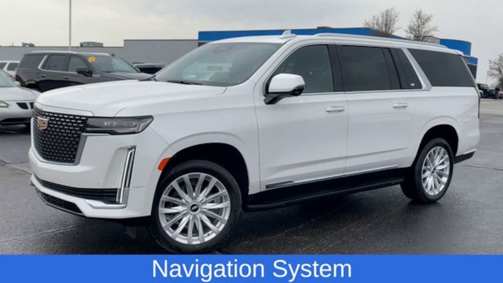 Apple CarPlay/Android Auto, Exterior Parking Camera Rear, Navigation System, Power Liftgate, Preferred Equipment Group 1SA, Speed control, 16.9" Diagonal OLED Infotainment Screen, 19 Speakers, 2-Presets Memory For Driver Seat Adjuster, 2-Way Driver Power Lumbar Seat Adjuster, 2-Way Front Passenger Power Lumbar Seat Adjuster, 3 Years of OnStar & Connected Services Plan, 3.23 Axle Ratio, 3rd row seats: split-bench, 4-Way Power Driver Lumbar Seat Adjuster, 4-Way Power Front Passenger Lumbar Seat Adjuster, 4-Wheel Disc Brakes, 8-Way Power Driver Seat Adjuster, 8-Way Power Front Passenger Seat Adjuster, ABS brakes, Air Conditioning, Alloy wheels, AM/FM radio: SiriusXM with 360L, Audio memory, Auto High-beam Headlights, Auto tilt-away steering wheel, Auto-dimming door mirrors, Automatic temperature control, Brake assist, Bumpers: body-color, Compass, Delay-off headlights, Driver door bin, Driver vanity mirror, Dual front impact airbags, Dual front side impact airbags, Electronic Stability Control, Emergency communication system: OnStar and Cadillac connected services capable, Four wheel independent suspension, Front anti-roll bar, Front Bucket Seats, Front Center Armrest w/Storage, Front dual zone A/C, Front reading lights, Fully automatic headlights, Garage door transmitter, HD Radio, Heated door mirrors, Heated Driver & Front Passenger Seats, Heated front seats, Heated rear seats, Heated steering wheel, Illuminated entry, Inteluxe Seat Trim, Low tire pressure warning, Memory seat, Not Equipped w/2nd Row Express-Up Window Control, Not Equipped w/4-Way Driver & Fr Pass Pwr Lumbar, Occupant sensing airbag, Outside temperature display, Overhead airbag, Overhead console, Panic alarm, Passenger door bin, Passenger vanity mirror, Power door mirrors, Power driver seat, Power passenger seat, Power steering, Power windows, Premium Smooth Ride Suspension, Radio data system, Radio: AM/FM w/Navigation, Rain sensing wipers, Rear air conditioning, Rear anti-roll bar, Rear reading lights, Rear window defroster, Rear window wiper, Remote keyless entry, SiriusXM w/360L, Split folding rear seat, Spoiler, Steering wheel memory, Steering wheel mounted audio controls, Tachometer, Teen Driver, Telescoping steering wheel, Tilt steering wheel, Traction control, Trip computer, Turn signal indicator mirrors, Variably intermittent wipers, Voltmeter, Wheels: 22" 14-Spoke Alloy w/Bright Silver Finish, Wireless Apple CarPlay/Wireless Android Auto, ALL WHEEL DRIVE, 6.2L V-8, Apple CarPlay/Android Auto, Exterior Parking Camera Rear, Navigation System, Power Liftgate, Preferred Equipment Group 1SA, Speed control.