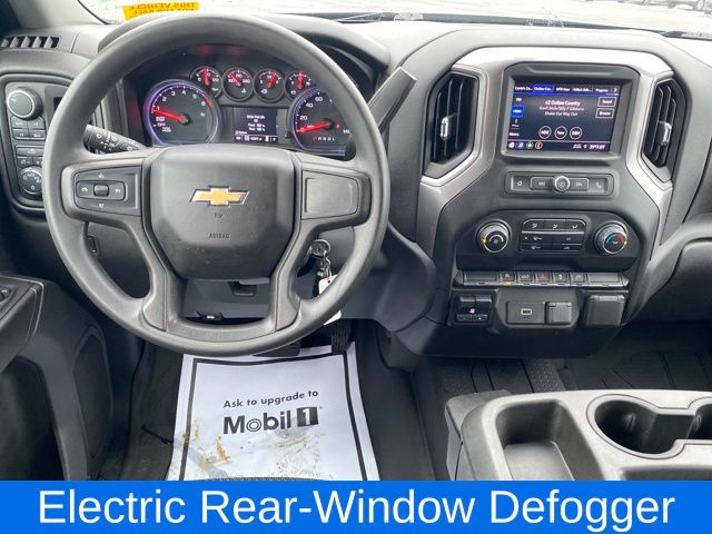 The spacious interior of the Silverado 1500 Custom offers ample room for passengers and cargo, with a 40/20/40 split-bench front seat and a 60/40 folding rear bench seat. The Chevrolet Infotainment 3 System with a 3.5" diagonal monochromatic display, Bluetooth connectivity, and Apple CarPlay/Android Auto integration keeps you connected and entertained on the go.