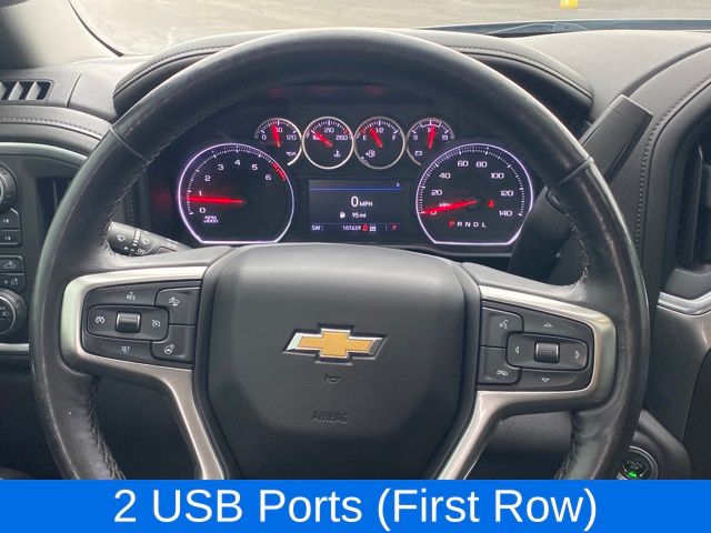 2 USB Ports (First Row), 3.23 Rear Axle Ratio, Adaptive Cruise Control, Apple CarPlay/Android Auto, Automatic Emergency Braking, Black Name Plates (LPO), Dark Essentials Package (LPO), Floor Mounted Center Console, Following Distance Indicator, Forward Collision Alert, Front Pedestrian Braking, Heated Driver & Front Outboard Passenger Seats, IntelliBeam Automatic High Beam On/Off, Lane Keep Assist w/Lane Departure Warning, LTZ Convenience Package, LTZ Plus Package, Power Sliding Rear Window w/Rear Defogger, Power Sunroof, Safety Alert Seat, Safety Package, Safety Package II, Universal Home Remote, Ventilated Driver & Front Passenger Seats, Wheels: 22" High Gloss Black (LPO), Wheels: 22" Transit Steel (LPO), 10-Way Power Driver Seat w/Lumbar, 10-Way Power Passenger Seat Adjuster w/Lumbar, 12-Volt Rear Auxiliary Power Outlet, 120-Volt Bed Mounted Power Outlet, 120-Volt Instrument Panel Power Outlet, 170 Amp Alternator, 2 USB Ports, 4-Wheel Disc Brakes, 4.2" Diagonal Color Display Driver Info Center, 4G LTE Wi-Fi Hot Spot Capable, 6 Speakers, 6-Speaker Audio System, ABS brakes, Advanced Trailering System, Air Conditioning, Alloy wheels, AM/FM radio: SiriusXM with 360L, Auto-dimming door mirrors, Auto-Dimming Inside Rear-View Mirror, Auto-dimming Rear-View mirror, Auto-Locking Rear Differential, Automatic temperature control, Auxiliary External Transmission Oil Cooler, Bluetooth® For Phone, Brake assist, Bumpers: chrome, Chevrolet Connected Access Capable, Chevytec Spray-On Black Bedliner, Chrome Grille, Chrome Mirror Caps, Color-Keyed Carpeting Floor Covering, Compass, Deep-Tinted Glass, Delay-off headlights, Driver door bin, Driver Memory, Driver vanity mirror, Dual Exhaust w/Polished Outlets, Dual front impact airbags, Dual front side impact airbags, Electric Rear-Window Defogger, Electrical Lock Control Steering Column, Electronic Cruise Control, Electronic Stability Control, EZ Lift Power Lock & Release Tailgate, Front anti-roll bar, Front Black Bowtie Emblem (LPO), Front Bucket Seats, Front Center Armrest w/Storage, Front dual zone A/C, Front fog lights, Front Frame-Mounted Black Recovery Hooks, Front LED Fog Lamps, Front reading lights, Front Rubberized Vinyl Floor Mats, Front wheel independent suspension, Fully automatic headlights, Garage door transmitter, HD Rear Vision Camera, Heated door mirrors, Heated front seats, Heated Steering Wheel, Heated steering wheel, Heavy Duty Suspension, Hitch Guidance, Hitch Guidance w/Hitch View, Illuminated entry, Integrated Trailer Brake Controller, Keyless Open & Start, Lane Change Alert w/Side Blind Zone Alert, Leather Wrapped Steering Wheel, LED Cargo Area Lighting, Low tire pressure warning, Manual Tilt/Telescoping Steering Column, Memory seat, Multi-Flex Tailgate, Not Equipped w/Automatic Stop/Start, Not Equipped w/HD Radio, Not Equipped w/Heated 2nd Row Outboard Seats, Occupant sensing airbag, OnStar & Chevrolet Connected Services Capable, Outside Heated Power-Adjustable Mirrors, Outside temperature display, Overhead airbag, Overhead console, Panic alarm, Passenger door bin, Passenger vanity mirror, Perforated Leather-Appointed Front Seat Trim, Perimeter Lighting, Power Door Locks, Power door mirrors, Power driver seat, Power Front Passenger Windows w/Express Up/Down, Power Front Windows w/Driver Express Up/Down, Power passenger seat, Power Rear Windows w/Express Down, Power steering, Power Tailgate, Power windows, Power-Retractable Assist Steps, Preferred Equipment Group 1LZ, Premium audio system: Chevrolet Infotainment 3 Plus, Radio data system, Radio: Chevrolet Infotainment 3 Plus System, Rear Cross Traffic Alert, Rear Dual USB Charging-Only Ports, Rear reading lights, Rear Rubberized-Vinyl Floor Mats, Rear seat center armrest, Rear step bumper, Rear Wheelhouse Liners, Rear window defroster, Remote keyless entry, Re