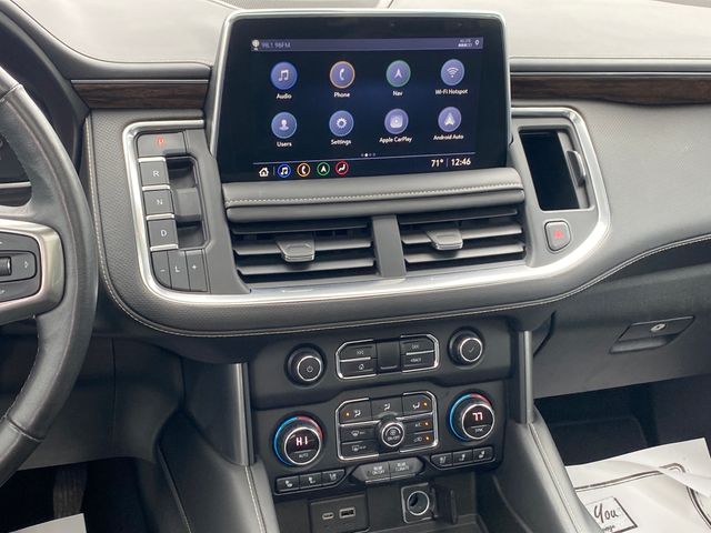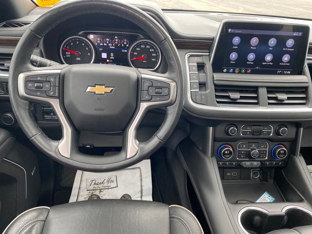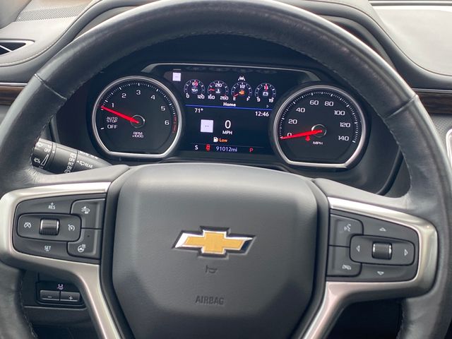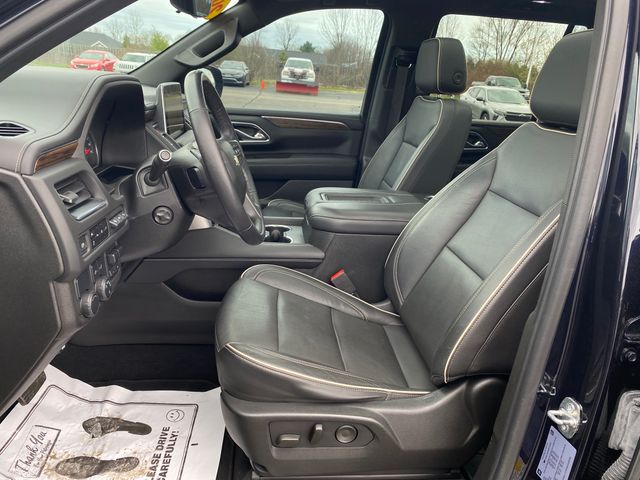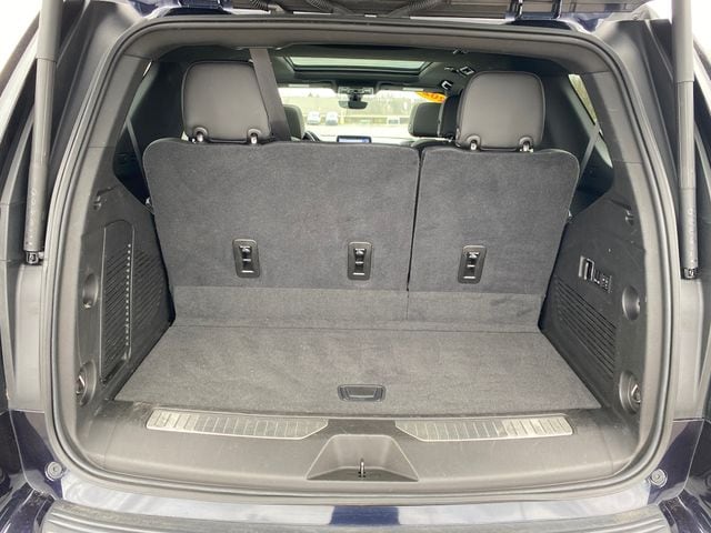 10 Speakers, 12-Way Power Driver & Passenger Seat Adjusters, 15" Diagonal Multi-Color Head-Up Display, 1st & 2nd Row Color-Keyed Carpeted Floor Mats, 1st, 2nd & 3rd Rows All-Weather Floor Liners (LPO), 2 USB Data Ports, 20" x 9" Polished Aluminum Wheels, 3.23 Rear Axle Ratio, 3rd Row 60/40 Power-Folding Split-Bench Seat, 3rd row seats: split-bench, 4-Wheel Disc Brakes, ABS brakes, Adaptive Cruise Control, Adaptive suspension, Advanced Trailering Package, Advanced Trailering System, Air Conditioning, Alloy wheels, AM/FM radio: SiriusXM with 360L, Apple CarPlay/Android Auto, Auto High-beam Headlights, Auto-dimming door mirrors, Auto-Dimming Inside Rear-View Mirror, Auto-dimming Rear-View mirror, Auto-leveling suspension, Automatic Heated Steering Wheel, Automatic temperature control, Black Illuminated Front Bowtie Emblem (LPO), Bose 10-Speaker Centerpoint Surround Audio Sys Ft, Brake assist, Bright Front & Rear Door Sill Plates, Bumpers: body-color, Cargo Security Shade (LPO), Chrome Door Handles w/Body-Color Strip, Chrome Mirror Caps, Color-Keyed Carpeting Floor Covering, Compass, Delay-off headlights, Driver & Front Outboard Passenger Airbags, Driver door bin, Driver vanity mirror, Dual Exhaust System, Dual front impact airbags, Dual front side impact airbags, Dual-Pane Power Panoramic Sunroof, Electronic Stability Control, Emergency communication system: OnStar and Chevrolet connected services capable, Enhanced Automatic Emergency Braking, Enhanced Display & Alert Package, Enhanced Driver Information Center, Extra Capacity Cooling System, Floor Console w/Storage Area, Four wheel independent suspension, Front & Rear Park Assist, Front anti-roll bar, Front Bucket Seats, Front Center Armrest, Front dual zone A/C, Front High-Back Reclining Bucket Seats, Front reading lights, Fully automatic headlights, Garage door transmitter, Hands-Free Rear Power Programmable Liftgate, HD Radio, HD Surround Vision, Heated & Ventilated Driver & Front Passenger Seats, Heated 2nd Row Outboard Seats, Heated door mirrors, Heated Driver & Front Passenger Seats, Heated front seats, Heated rear seats, Heated steering wheel, Hitch Guidance w/Hitch View, Illuminated entry, Infotainment Display, Inside Rearview Auto-Dimming Rear Camera Mirror, Integrated Trailer Brake Controller, Lane Change Alert w/Side Blind Zone Alert, Lane Keep Assist w/Lane Departure Warning, Leather steering wheel, Leather-Wrapped Steering Wheel, LED Daytime Running Lamps, License Plate Front Mounting Package, Low tire pressure warning, Magnetic Ride Control Suspension, Max Trailering Package, Memory seat, Memory Settings, Navigation System, Occupant sensing airbag, Outside Heated Power-Adjustable Mirrors, Outside temperature display, Overhead airbag, Overhead console, Panic alarm, Passenger door bin, Passenger vanity mirror, Perforated Leather Seat Trim, Power door mirrors, Power driver seat, Power Liftgate, Power passenger seat, Power Release 2nd Row Bucket Seats, Power steering, Power Tilt & Telescopic Steering Column, Power windows, Preferred Equipment Group 1LZ, Premium audio system: Chevrolet Infotainment 3, Premium Package, Radio: Chevrolet Infotainment 3 Premium System, Rain sensing wipers, Rear air conditioning,