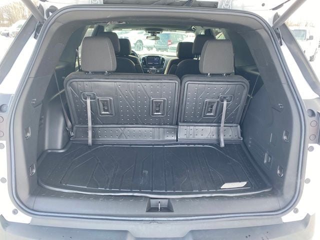 1st & 2nd Row All-Weather Floor Liner (LPO), 2-Way Manual Front Passenger Seat Adjuster, 3.49 Axle Ratio, 3rd Row All-Weather Floor Liner (LPO), 3rd row seats: split-bench, 4-Wheel Disc Brakes, 6 Speakers, 6-Speaker Audio System Feature, 8-Way Power Driver Seat Adjuster, ABS brakes, Air Conditioning, Alloy wheels, AM/FM radio: SiriusXM, Apple CarPlay/Android Auto, Auto High-beam Headlights, Automatic temperature control, Black Bowtie, Black Roof Rails, Brake assist, Bumpers: body-color, Compass, Delay-off headlights, Driver door bin, Driver vanity mirror, Dual front impact airbags, Dual front side impact airbags, Electronic Stability Control, Emergency communication system, Exterior Parking Camera Rear, Floor Liner Package (LPO), Four wheel independent suspension, Front anti-roll bar, Front Bucket Seats, Front Center Armrest, Front dual zone A/C, Front reading lights, Fully automatic headlights, Garage door transmitter, Heated door mirrors, Heated Driver & Front Passenger Seats, Heated front seats, Heavy-Duty Cooling System, Hitch Guidance w/Hitch View, Illuminated entry, Integrated Cargo Liner (LPO), Leather steering wheel, Low tire pressure warning, Not Equipped w/Rear Park Assist (060), Occupant sensing airbag, Outside temperature display, Overhead airbag, Overhead console, Panic alarm, Passenger door bin, Passenger vanity mirror, Power door mirrors, Power Driver Lumbar Control, Power driver seat, Power Liftgate, Power steering, Power windows, Preferred Equipment Group 1LT, Premium Cloth Seat Trim, Radio data system, Radio: Chevrolet Infotainment 3 Plus System, Rear air conditioning, Rear anti-roll bar, Rear reading lights, Rear window defroster, Rear window wiper, Remote keyless entry, Security system, SiriusXM w/360L, Speed control, Speed-sensing steering, Spoiler, Steering wheel mounted audio controls, Tachometer, Telescoping steering wheel, Tilt steering wheel, Traction control, Trailering Assist Guidelines, Trailering Equipment, Trip computer, Turn signal indicator mirrors, Variably intermittent wipers, Voltmeter, Wheels: 18" Bright Silver-Painted Aluminum.