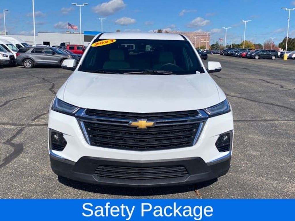 Lane Change Alert w/Side Blind Zone Alert, Rear Cross Traffic Alert, Rear Park Assist w/Audible Warning, Safety Package, 1st & 2nd Row All-Weather Floor Liner (LPO), 2-Way Manual Front Passenger Seat Adjuster, 3.49 Axle Ratio, 3rd Row All-Weather Floor Liner (LPO), 3rd row seats: split-bench, 4-Wheel Disc Brakes, 6 Speakers, 6-Speaker Audio System Feature, 6-Way Manual Driver Seat Adjuster, ABS brakes, Air Conditioning, Alloy wheels, AM/FM radio: SiriusXM, Apple CarPlay/Android Auto, Auto High-beam Headlights, Automatic temperature control, Brake assist, Bumpers: body-color, Compass, Delay-off headlights, Driver door bin, Driver vanity mirror, Dual front impact airbags, Dual front side impact airbags, Electronic Stability Control, Emergency communication system, Exterior Parking Camera Rear, Floor Liner Package (LPO), Four wheel independent suspension, Front anti-roll bar, Front Bucket Seats, Front Center Armrest, Front dual zone A/C, Front reading lights, Fully automatic headlights, Heated door mirrors, Illuminated entry, Integrated Cargo Liner (LPO), Low tire pressure warning, Not Equipped w/Rear Park Assist (060), Occupant sensing airbag, Outside Heated Power-Adjustable Mirrors, Outside temperature display, Overhead airbag, Overhead console, Panic alarm, Passenger door bin, Passenger vanity mirror, Power door mirrors, Power steering, Power windows, Preferred Equipment Group 1LS, Premium Cloth Seat Trim, Radio data system, Radio: Chevrolet Infotainment System AM/FM Stereo, Rear air conditioning, Rear anti-roll bar, Rear reading lights, Rear window defroster, Rear window wiper, Remote keyless entry, Security system, SiriusXM Radio, Speed control, Speed-sensing steering, Split folding rear seat, Spoiler, Steering wheel mounted audio controls, Tachometer, Telescoping steering wheel, Tilt steering wheel, Traction control, Trip computer, Variably intermittent wipers, Voltmeter, Wheels: 18" Bright Silver Painted Aluminum, Lane Change Alert w/Side Blind Zone Alert, Rear Cross Traffic Alert, Rear Park Assist w/Audible Warning, Safety Package.