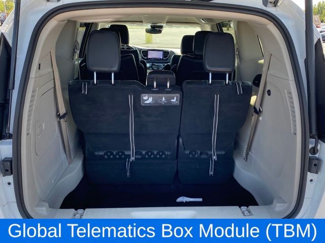 Comfort and convenience are paramount in this Pacifica Hybrid, with amenities like dual-zone automatic climate control, a power liftgate, and a premium leather-wrapped steering wheel. The spacious interior offers seating for up to eight, with a split-folding third-row seat for exceptional versatility.