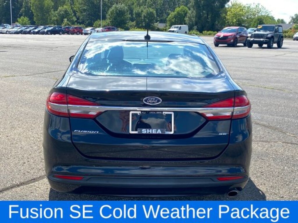 All-Weather Front & Rear Floor Mats, Equipment Group 200A, Exterior Parking Camera Rear, Fusion SE Cold Weather Package, Heated Front Seats, Speed control, Upgraded Sideview Mirrors, 4-Wheel Disc Brakes, 6 Speakers, ABS brakes, Air Conditioning, Alloy wheels, AM/FM radio: SiriusXM, Brake assist, Bumpers: body-color, CD player, Cloth Front Bucket Seats, Compass, Delay-off headlights, Driver door bin, Driver vanity mirror, Dual front impact airbags, Dual front side impact airbags, Electronic Stability Control, Emergency communication system: 911 Assist, Four wheel independent suspension, Front anti-roll bar, Front Bucket Seats, Front Center Armrest, Front reading lights, Fully automatic headlights, Illuminated entry, Knee airbag, Low tire pressure warning, Occupant sensing airbag, Outside temperature display, Overhead airbag, Overhead console, Panic alarm, Passenger door bin, Passenger vanity mirror, Power door mirrors, Power driver seat, Power passenger seat, Power steering, Power windows, Radio data system, Radio: AM/FM Stereo/MP3/Single-CD, Rear anti-roll bar, Rear reading lights, Rear seat center armrest, Rear window defroster, Remote keyless entry, Security system, SiriusXM Radio, Speed-sensing steering, Speed-Sensitive Wipers, Split folding rear seat, Steering wheel mounted audio controls, SYNC Communications & Entertainment System, Tachometer, Telescoping steering wheel, Tilt steering wheel, Traction control, Trip computer, Variably intermittent wipers, Wheels: 17" Premium Painted Luster Nickel, Clean Carfax, All-Weather Front & Rear Floor Mats, Equipment Group 200A, Exterior Parking Camera Rear, Fusion SE Cold Weather Package, Heated Front Seats, Speed control, Upgraded Sideview Mirrors.