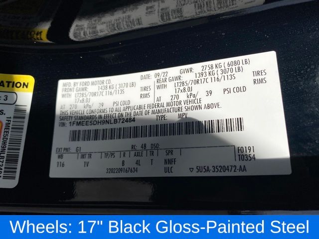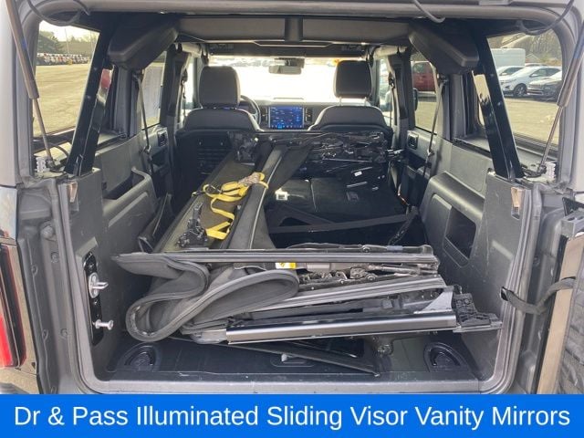 12" LCD Capacitive Touchscreen w/Swipe Capability, 2-Door Intelligent Access w/Lock/Unlock, 360-Degree Camera, Additional Sound Deadening, Ambient Footwell Lighting, Auto-Dimming Interior Rear-View Mirror, Connected Navigation, Dr & Pass Illuminated Sliding Visor Vanity Mirrors, Dual-Zone Electronic Automatic Temperature Control, Enhanced Voice Recognition, Equipment Group 333A High Package, Exterior Parking Camera Rear, Front Parking Sensors, Front Row Heated Seats, Hard Top Sound Deadening Headliner, Information on Demand Panel, Power Outlet - Back Side of Center Floor Console, Rear Parking Sensors, Sideview Mirrors, Speed control, SYNC 4, Wheels: 17" Black Gloss-Painted Steel, 4-Wheel Disc Brakes, 4.7 Axle Ratio, 6 Speakers, ABS brakes, Air Conditioning, Alloy wheels, AM/FM radio: SiriusXM with 360L, AM/FM Stereo, Auto High-Beam Headlamps, Auto High-beam Headlights, BLIS Blind Spot Information System, Brake assist, Carbonized Gray Molded-In-Color Hard Top, Cargo Area Protector, Compass, Delay-off headlights, Driver door bin, Driver vanity mirror, Dual front impact airbags, Dual front side impact airbags, Electronic Stability Control, Emergency communication system: 911 Assist, Front & Rear Floor Liners, Front anti-roll bar, Front Bucket Seats, Front Center Armrest, Front reading lights, Front Row Top Panels Storage Bag, Front wheel independent suspension, Fully automatic headlights, Heated door mirrors, Illuminated entry, Integrated roll-over protection, Lane-Keeping System, Leather Shift Knob, Low tire pressure warning, Marine Grade Vinyl Bucket Seats, Occupant sensing airbag, Outside temperature display, Overhead airbag, Overhead console, Panic alarm, Passenger door bin, Passenger vanity mirror, Power door mirrors, Power steering, Power windows, Pre-Collision Assist w/Automatic Emergency Braking, Radio data system, Rear-View Camera, Rear-Window Defroster & Washer, Remote keyless entry, Security system, SiriusXM Radio w/360L, Split folding rear seat, Steering wheel mounted audio controls, Tachometer, Telescoping steering wheel, Tilt steering wheel, Traction control, Trip computer, Variably intermittent wipers, Voltmeter, 12" LCD Capacitive Touchscreen w/Swipe Capability, 2-Door Intelligent Access w/Lock/Unlock, 360-Degree Camera, Additional Sound Deadening, Ambient Footwell Lighting, Auto-Dimming Interior Rear-View Mirror, Connected Navigation, Dr & Pass Illuminated Sliding Visor Vanity Mirrors, Dual-Zone Electronic Automatic Temperature Control, Enhanced Voice Recognition, Equipment Group 333A High Package, Exterior Parking Camera Rear, Front Parking Sensors, Front Row Heated Seats, Hard Top Sound Deadening Headliner, Information on Demand Panel, Power Outlet - Back Side of Center Floor Console, Rear Parking Sensors, Sideview Mirrors, Speed control, SYNC 4, Wheels: 17" Black Gloss-Painted Steel.