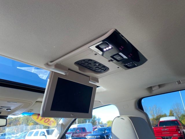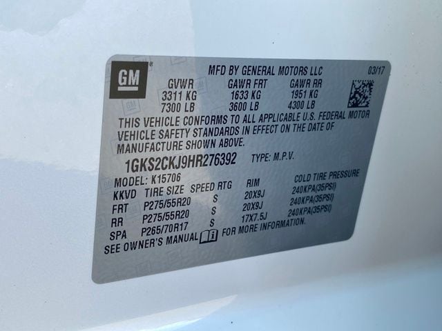 Bose Centerpoint Premium 10-Speaker Surround Sound, Enhanced Driver Alert Package, Forward Collision Alert Sensor Indicator, Intellibeam Automatic High Beam On/Off Headlamps, Lane Keep Assist, Low Speed Forward Automatic Braking, Magnetic Ride Control Suspension Package, Navigation System, 10 Speakers, 17" Disc/Disc VAC Power Brakes, 3.23 Axle Ratio, 3rd row seats: split-bench, 4-Wheel Disc Brakes, 5 Auxiliary 12-volt Power Outlets, ABS brakes, Adaptive suspension, Adjustable pedals, Air Conditioning, All-Weather Cargo Mat (LPO), All-Weather Floor Mats, Alloy wheels, AM/FM radio: SiriusXM, Apple CarPlay/Android Auto, Auto High-beam Headlights, Auto-dimming door mirrors, Auto-dimming Rear-View mirror, Automatic temperature control, Black Assist Steps w/Chrome Strip, Bodyside moldings, Brake assist, Bumpers: body-color, CD Player, CD player, Compass, Delay-off headlights, Driver door bin, Driver vanity mirror, Dual front impact airbags, Dual front side impact airbags, Electronic Stability Control, Emergency communication system: OnStar Guidance, Exterior Parking Camera Rear, Front anti-roll bar, Front Bucket Seats, Front Center Armrest, Front dual zone A/C, Front fog lights, Front reading lights, Front wheel independent suspension, Full-Feature Reclining Bucket Seats, Fully automatic headlights, Garage door transmitter, Genuine wood console insert, Genuine wood dashboard insert, Genuine wood door panel insert, Hands Free Power Liftgate, Heads-Up Display, Heated & Ventilated Driver & Front Passenger Seats, Heated door mirrors, Heated front seats, Heated Leather-Wrapped Steering Wheel, Heated rear seats, Heated steering wheel, High-Intensity Discharge Headlights, Illuminated entry, Inside Rear-View Auto-Dimming Mirror, Integrated Trailer Brake Controller, Interior Protection Package (LPO), Leather Shift Knob, Low tire pressure warning, Memory Package, Memory seat, NavTraffic, Occupant sensing airbag, OnStar Basic Plan For 5 Years, OnStar w/4G LTE, Open Road Package, Outside temperature display, Overhead airbag, Overhead console, Panic alarm, Passenger door bin, Passenger vanity mirror, Passive Entry System, Pedal memory, Perforated Leather-Appointed Seat Trim, Power door mirrors, Power driver seat, Power Liftgate, Power passenger seat, Power Release Second Row Bucket Seats, Power steering, Power Tilt & Telescopic Steering Column, Power Tilt-Sliding Sunroof w/Express-Open/Close, Power windows, Power-Adjustable Pedals For Accelerator & Brake, Preferred Equipment Group 5SA, Premium audio system: IntelliLink, Push Button Keyless Start, Radio: AM/FM/SiriusXM w/Navigation, Rain sensing wipers, Rear air conditioning, Rear anti-roll bar, Rear Cross-Traffic Alert, Rear reading lights, Rear Seat Blu-Ray/DVD Entertainment System, Rear window defroster, Rear window wiper, Remote Keyless Entry, Remote keyless entry, Roof rack: rails only, Security system, Side Blind Zone Alert w/Lane Change Alert, SiriusXM Satellite Radio, Speed control, Speed-sensing steering, Split folding rear seat, Spoiler, Steering wheel memory, Steering wheel mounted audio controls, Tachometer, Telescoping steering wheel, Tilt steering wheel, Traction control, Trip computer, Turn signal indicator mirrors, Universal Home Remote, Variably intermittent wipers, Ventilated front seats, Voltmeter, Wheels: 20" x 9" Chrome, Wheels: 20" x 9" Ultra Bright Machined Aluminum, Wireless Charging, Bose Centerpoint Premium 10-Speaker Surround Sound, Enhanced Driver Alert Package, Forward Collision Alert Sensor Indicator, Intellibeam Automatic High Beam On/Off Headlamps, Lane Keep Assist, Low Speed Forward Automatic Braking, Magnetic Ride