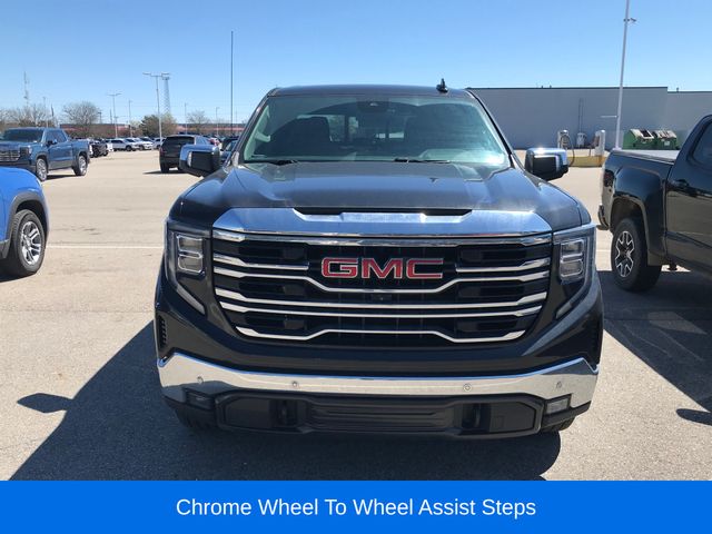 The interior of the Sierra 1500 SLT is designed with your comfort and convenience in mind. Enjoy the premium Bose 7-speaker sound system, dual-zone automatic climate control, and a host of advanced safety features, including Adaptive Cruise Control, Automatic Emergency Braking, and Lane Keep Assist.