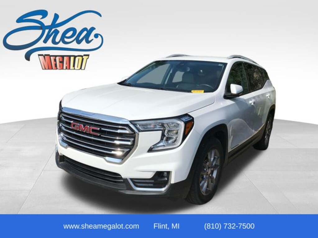 Adaptive Cruise Control, GMC Pro Safety Plus, Lane Change Alert w/Side Blind Zone Alert, Rear Cross-Traffic Alert, Rear Park Assist, Safety Alert Seat, 2 USB Data Ports, 2 USB Data Ports w/SD Card Reader, 3 Years of OnStar & Connected Services Plan, 3.47 Axle Ratio, 4-Wheel Disc Brakes, 6 Speakers, 6-Speaker Audio System Feature, 6-Way Power Front Passenger Seat, 8-Way Power Driver Seat Adjuster, ABS brakes, Air Conditioning, Alloy wheels, AM/FM radio: SiriusXM, Auto High-beam Headlights, Auto-dimming Rear-View mirror, Automatic temperature control, Bluetooth® For Phone, Brake assist, Bumpers: body-color, Cold Air Grille Shutter, Compass, Delay-off headlights, Driver & Front Passenger Heated Seats, Driver door bin, Driver vanity mirror, Dual front impact airbags, Dual front side impact airbags, Electronic Stability Control, Emergency communication system: OnStar Guidance, Floor Liner Package (LPO), Four wheel independent suspension, Front & Rear All-Weather Floor Liners (LPO), Front anti-roll bar, Front Bucket Seats, Front Center Armrest, Front dual zone A/C, Front fog lights, Front Passenger 2-Way Power Lumbar, Front reading lights, Fully automatic headlights, Garage door transmitter, Heated door mirrors, Heated front seats, Heated steering wheel, Illuminated entry, Integrated Cargo Liner (LPO), Low tire pressure warning, Memory seat, Not Equipped w/Lane Change & Rear Cross Traffic Alerts, Occupant sensing airbag, Outside temperature display, Overhead airbag, Overhead console, Panic alarm, Passenger door bin, Passenger vanity mirror, Perforated Leather-Appointed Seat Trim, Power door mirrors, Power Driver Lumbar Control, Power driver seat, Power Liftgate, Power passenger seat, Power steering, Power windows, Preferred Equipment Group 4SA, Radio data system, Radio: GMC Infotainment Audio System w/8" Display, Rear anti-roll bar, Rear seat center armrest, Rear window defroster, Rear window wiper, Remote keyless entry, Roof rack: rails only, Security system, SiriusXM Radio, Speed control, Speed-sensing steering, Split folding rear seat, Spoiler, Steering wheel mounted audio controls, Tachometer, Telescoping steering wheel, Tilt steering wheel, Traction control, Trip computer, Turn signal indicator mirrors, Variably intermittent wipers, Wheel Locks, Wheels: 18" x 7" Silver Painted Aluminum, Wireless Apple CarPlay/Wireless Android Auto, Adaptive Cruise Control, GMC Pro Safety Plus, Lane Change Alert w/Side Blind Zone Alert, Rear Cross-Traffic Alert, Rear Park Assist, Safety Alert Seat.