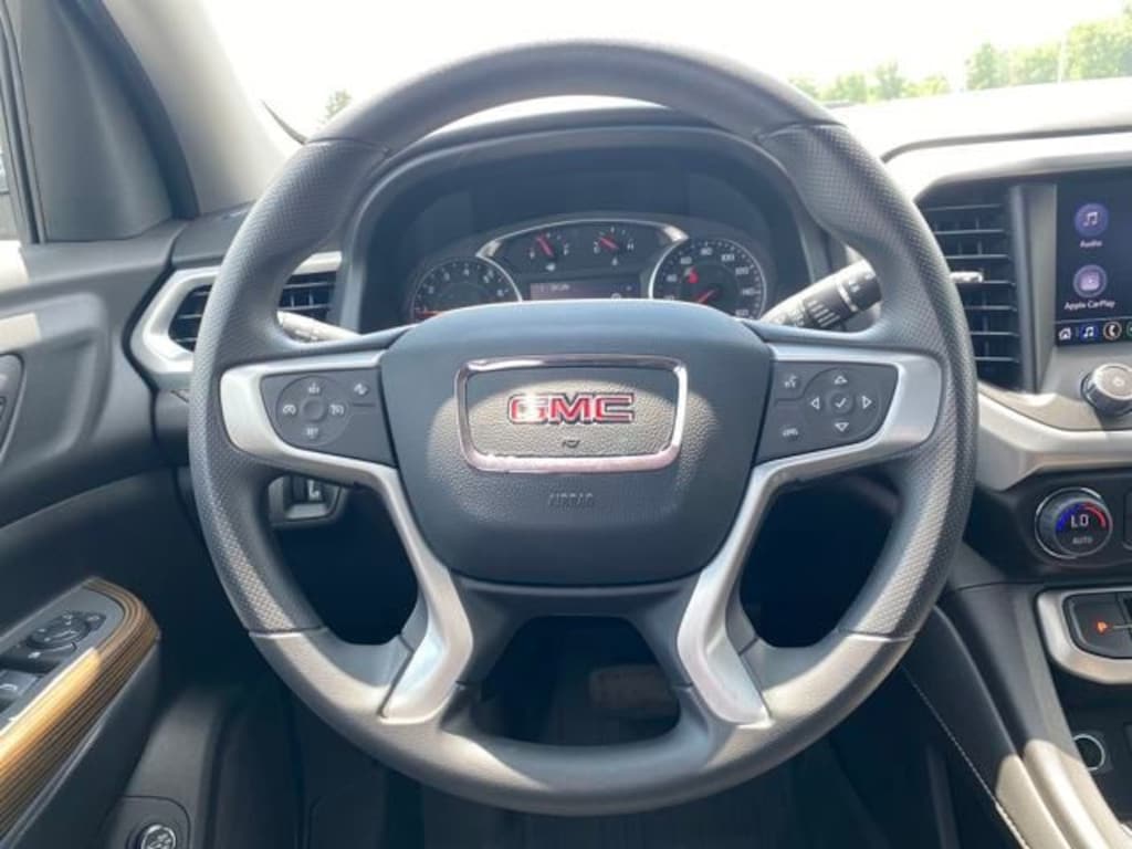 120-Volt Power Outlet, 1st & 2nd Row All-Weather Floor Liner (LPO), 3.47 Final Drive Axle Ratio, 3rd Row All-Weather Floor Liner (LPO), 3rd row seats: split-bench, 4-Way Manual Driver Seat Adjuster, 4-Way Manual Passenger Seat Adjuster, 4-Wheel Disc Brakes, 6 Speakers, 6-Passenger (2-2-2 Seating Configuration), 6-Speaker Audio System Feature, 8-Way Power Driver Seat Adjuster, ABS brakes, Air Conditioning, Alloy wheels, AM/FM radio: SiriusXM, Apple CarPlay/Android Auto, Auto High-beam Headlights, Automatic temperature control, Brake assist, Brushed Aluminum Roof Rails, Bumpers: body-color, Compass, Delay-off headlights, Driver Convenience Package, Driver door bin, Driver vanity mirror, Dual front impact airbags, Dual front side impact airbags, Electronic Stability Control, Emergency communication system: OnStar and GMC connected services capable, Floor Liner Package (LPO), Four wheel independent suspension, Front anti-roll bar, Front Bucket Seats, Front Center Armrest, Front dual zone A/C, Front reading lights, Fully automatic headlights, Hands Free Power Programmable Liftgate, Heated door mirrors, Heated Driver & Front Passenger Seats, Illuminated entry, Integrated Cargo Liner (LPO), Knee airbag, Low tire pressure warning, Not Equipped w/Front & Rear Park Assist (060), Occupant sensing airbag, Outside temperature display, Overhead airbag, Overhead console, Panic alarm, Passenger door bin, Passenger vanity mirror, Power door mirrors, Power Driver Lumbar Control Seat Adjuster, Power steering, Power windows, Preferred Equipment Group 3SA, Premium Cloth Seat Trim, Radio data system, Radio: AM/FM w/8" Diagonal Multi-Touch Display, Rear air conditioning, Rear anti-roll bar, Rear reading lights, Rear window defroster, Rear window wiper, Remote keyless entry, Remote Start, Security system, SiriusXM Radio, Speed control, Speed-sensing steering, Spoiler, Steering wheel mounted audio controls, Tachometer, Telescoping steering wheel, Tilt steering wheel, Traction control, Trip computer, Turn signal indicator mirrors, Variably intermittent wipers, Voltmeter, Wheels: 18" Machined Aluminum w/Dark Accents, Wireless Apple CarPlay/Wireless Android Auto.