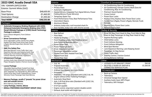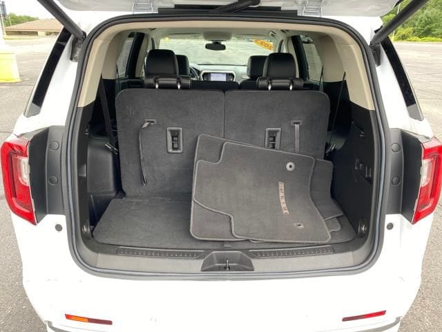 Bose Premium 8-Speaker Audio System Feature, Navigation System, 20" Ultra Bright Machined Aluminum Wheels, 3.49 Final Drive Axle Ratio, 3rd row seats: split-bench, 4-Wheel Disc Brakes, 6-Passenger (2-2-2 Seating Configuration), 7-Passenger (2-3-2 Seating Configuration), 8 Speakers, 8-Way Power Driver Seat Adjuster, 8-Way Power Passenger Seat Adjuster, ABS brakes, Air Conditioning, Alloy wheels, AM/FM radio: SiriusXM with 360L, Apple CarPlay/Android Auto, Auto High-beam Headlights, Auto-dimming door mirrors, Auto-dimming Rear-View mirror, Automatic temperature control, Brake assist, Bumpers: body-color, Compass, Delay-off headlights, Deleted 3 Years of OnStar & Connected Services Plan, Driver door bin, Driver vanity mirror, Dual front impact airbags, Dual front side impact airbags, Electronic Stability Control, Emergency communication system: OnStar and GMC connected services capable, Four wheel independent suspension, Front anti-roll bar, Front Bucket Seats, Front Center Armrest, Front dual zone A/C, Front fog lights, Front License Plate Bracket, Front reading lights, Fully automatic headlights, Garage door transmitter, Heads-Up Display, Heated & Ventilated Driver & Front Passenger Seats, Heated door mirrors, Heated Driver & Front Passenger Seats, Heated front seats, Heated Rear Outboard Seating Positions, Heated rear seats, Heated steering wheel, Illuminated entry, Knee airbag, Low tire pressure warning, Memory seat, Occupant sensing airbag, Outside temperature display, Overhead airbag, Overhead console, Panic alarm, Passenger door bin, Passenger vanity mirror, Perforated Leather-Appointed Seat Trim, Power door mirrors, Power Driver Lumbar Control Seat Adjuster, Power driver seat, Power Liftgate, Power Passenger Lumbar Control Seat Adjuster, Power passenger seat, Power steering, Power windows, Preferred Equipment Group 5SA, Radio data system, Radio: AM/FM 8" Diagonal Multi-Touch Navigation, Rear air conditioning, Rear anti-roll bar, Rear reading lights, Rear window defroster, Rear window wiper, Remote keyless entry, Security system, SiriusXM w/360L, Speed control, Speed-sensing steering, Spoiler, Steering wheel memory, Steering wheel mounted audio controls, Tachometer, Telescoping steering wheel, Tilt steering wheel, Traction control, Trip computer, Turn signal indicator mirrors, Variably intermittent wipers, Ventilated front seats, Voltmeter, Wireless Apple CarPlay/Wireless Android Auto, Bose Premium 8-Speaker Audio System Feature, Navigation System.