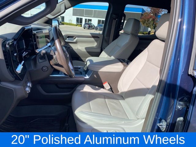Exterior styling is equally impressive, with the Pacific Blue Metallic paint, chrome accents, and 20-inch polished aluminum wheels giving the Sierra a bold, refined appearance. The SLT Premium Package adds even more premium touches, including chrome assist steps and a host of convenience features.