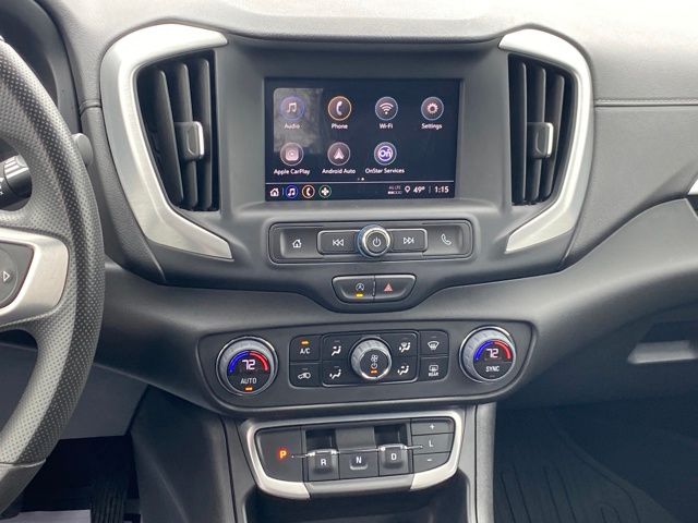 8-Way Power Driver Seat Adjuster, Driver & Front Passenger Heated Seats, Driver Convenience Package, Dual-Zone Automatic Climate Control, Remote Start, Roof-Mounted Luggage Rack Side Rails, 2 USB Data Ports w/Auxiliary Input Jack, 3.47 Axle Ratio, 4-Way Manual Driver's Seat, 4-Way Manual Front Passenger Seat, 4-Wheel Disc Brakes, 4.2" Multi-Color Driver Information Screen, 6 Speakers, 6-Speaker Audio System Feature, ABS brakes, Air Conditioning, Alloy wheels, AM/FM radio: SiriusXM, Auto High-beam Headlights, Auto-dimming Rear-View mirror, Bluetooth® For Phone, Brake assist, Bumpers: body-color, Cold Air Grille Shutter, Compass, Delay-off headlights, Driver door bin, Driver vanity mirror, Dual front impact airbags, Dual front side impact airbags, Electronic Stability Control, Emergency communication system: OnStar and GMC connected services capable, Floor Liner Package (LPO), Four wheel independent suspension, Front & Rear All-Weather Floor Liners (LPO), Front anti-roll bar, Front Bucket Seats, Front Center Armrest, Front reading lights, Fully automatic headlights, Heated door mirrors, Illuminated entry, Integrated Cargo Liner (LPO), Lane Departure Warning System, Low tire pressure warning, Occupant sensing airbag, Outside temperature display, Overhead airbag, Overhead console, Panic alarm, Passenger door bin, Passenger vanity mirror, Power door mirrors, Power Driver Lumbar Control, Power steering, Power windows, Preferred Equipment Group 3SA, Premium Cloth Seat Trim, Radio data system, Radio: GMC Infotainment Audio System w/7" Display, Rear anti-roll bar, Rear seat center armrest, Rear window defroster, Rear window wiper, Remote keyless entry, Security system, SiriusXM Radio, Speed control, Speed-sensing steering, Split folding rear seat, Spoiler, Steering wheel mounted audio controls, Tachometer, Telescoping steering wheel, Tilt steering wheel, Traction control, Trip computer, Variably intermittent wipers, Wheels: 17" x 7" Silver Painted Aluminum, Wireless Apple CarPlay/Wireless Android Auto, 8-Way Power Driver Seat Adjuster, Driver & Front Passenger Heated Seats, Driver Convenience Package, Dual-Zone Automatic Climate Control, Remote Start, Roof-Mounted Luggage Rack Side Rails.