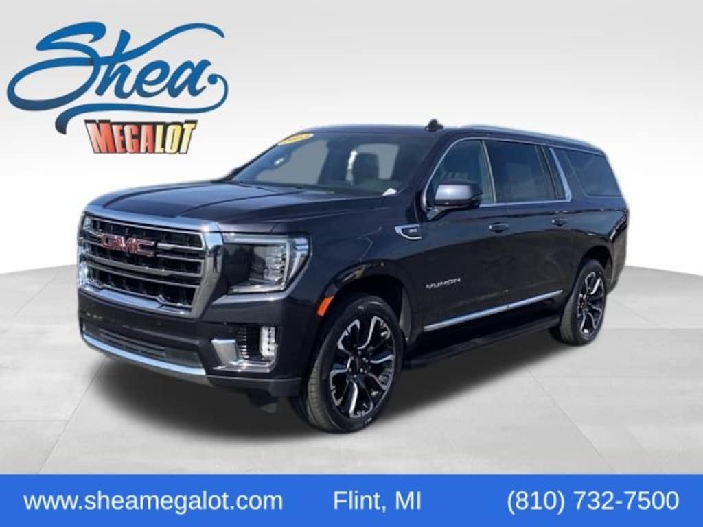 2 Presets For Outside Rearview Mirrors, 3rd Row 60/40 Power-Folding Split-Bench Seat, Adaptive Cruise Control, Automatic Emergency Braking, Bose 9-Speaker Stereo Audio System Feature, Dual-Pane Panoramic Power Sunroof, Enhanced Automatic Emergency Braking, HD Surround Vision, Heated 2nd Row Outboard Position Seats, Heated Steering Wheel, Max Trailering Package, Navigation System, Outside Heated Power-Adjustable Mirrors, Power Release 2nd Row 60/40 Split-Folding Bench Seat, Power Tilt & Telescopic Steering Column, Rear Pedestrian Alert, SLT Luxury Package, SLT Premium Package, 2 Presets For Power Driver Seat, 3.23 Rear Axle Ratio, 3rd row seats: split-bench, 4-Wheel Disc Brakes, 9 Speakers, ABS brakes, Air Conditioning, Alloy wheels, AM/FM radio: SiriusXM with 360L, AM/FM Stereo, Apple CarPlay/Android Auto, Auto High-beam Headlights, Auto-dimming Rear-View mirror, Automatic temperature control, Bodyside moldings, Brake assist, Bright Chrome Bodyside Moldings, Bright Front & Rear Door Sill Plates, Bumpers: body-color, Chrome Door Handles w/Body-Color Strip, Compass, Delay-off headlights, Driver door bin, Driver vanity mirror, Dual front impact airbags, Dual front side impact airbags, Electronic Stability Control, Emergency communication system: OnStar and GMC connected services capable, Extra Capacity Cooling System, Following Distance Indicator, Forward Collision Alert, Four wheel independent suspension, Front & Rear Park Assist, Front anti-roll bar, Front Bucket Seats, Front Center Armrest, Front dual zone A/C, Front fog lights, Front Pedestrian Braking, Front reading lights, Fully automatic headlights, Garage door transmitter, Hands-Free Power Programmable Rear Liftgate, Heated & Ventilated Driver & Front Passenger Seats, Heated door mirrors, Heated Driver & Front Passenger Seats, Heated front seats, Hitch Guidance w/Hitch View, Illuminated entry, Inside Rear-View Auto-Dimming Mirror, Integrated Trailer Brake Controller, IntelliBeam Automatic High Beam On/Off, Lane Change Alert w/Side Blind Zone Alert, Lane Keep Assist w/Lane Departure Warning, Low tire pressure warning, Memory seat, Occupant sensing airbag, Outside temperature display, Overhead airbag, Overhead console, Panic alarm, Passenger door bin, Passenger vanity mirror, Perforated Leather-Appointed Seating, Power door mirrors, Power driver seat, Power Liftgate, Power passenger seat, Power Release 2nd Row Bucket Seats, Power steering, Power windows, Preferred Equipment Group 4SA, Premium Smooth Ride Suspension, Rain sensing wipers, Rear air conditioning, Rear anti-roll bar, Rear Cross Traffic Alert, Rear reading lights, Rear seat center armrest, Rear window defroster, Rear window wiper, Remote keyless entry, Roof rack: rails only, Safety Alert Seat, Security system, SiriusXM w/360L, Smart Trailer Integration Indicator, Speed control, Speed-sensing steering, Split folding rear seat, Spoiler, Steering wheel mounted audio controls, Tachometer, Telescoping steering wheel, Tilt steering wheel, Traction control, Trailer Side Blind Zone Alert, Trip computer, Universal Home Remote, Variably intermittent wipers, Ventilated front seats, Voltmeter, Wheels: 20" x 9" 6-Spoke Polished Aluminum, Wheels: 22" Black w/Selective Machining (LPO), Wheels: 22" x 9" Steel