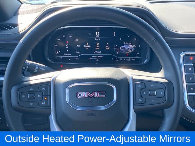 2 Presets For Outside Rearview Mirrors, 3rd Row 60/40 Power-Folding Split-Bench Seat, Adaptive Cruise Control, Dual-Pane Panoramic Power Sunroof, Enhanced Automatic Emergency Braking, HD Surround Vision, Heated 2nd Row Outboard Position Seats, Heated Steering Wheel, Navigation System, Outside Heated Power-Adjustable Mirrors, Power Release 2nd Row 60/40 Split-Folding Bench Seat, Power Tilt & Telescopic Steering Column, Rear Pedestrian Alert, SLT Luxury Package, SLT Premium Package, 2 Presets For Power Driver Seat, 3.23 Rear Axle Ratio, 3rd row seats: split-bench, 4-Wheel Disc Brakes, 9 Speakers, ABS brakes, Air Conditioning, Alloy wheels, AM/FM radio: SiriusXM with 360L, AM/FM Stereo, Apple CarPlay/Android Auto, Auto High-beam Headlights, Auto-dimming Rear-View mirror, Automatic Emergency Braking, Automatic temperature control, Bodyside moldings, Bose 9-Speaker Stereo Audio System Feature, Brake assist, Bright Chrome Bodyside Moldings, Bright Front & Rear Door Sill Plates, Bumpers: body-color, Chrome Door Handles w/Body-Color Strip, Compass, Delay-off headlights, Driver door bin, Driver vanity mirror, Dual front impact airbags, Dual front side impact airbags, Electronic Stability Control, Emergency communication system: OnStar and GMC connected services capable, Following Distance Indicator, Forward Collision Alert, Four wheel independent suspension, Front & Rear Park Assist, Front anti-roll bar, Front Bucket Seats, Front Center Armrest, Front dual zone A/C, Front fog lights, Front Pedestrian Braking, Front reading lights, Fully automatic headlights, Garage door transmitter, Hands-Free Power Programmable Rear Liftgate, Heated & Ventilated Driver & Front Passenger Seats, Heated door mirrors, Heated Driver & Front Passenger Seats, Heated front seats, Illuminated entry, Inside Rear-View Auto-Dimming Mirror, IntelliBeam Automatic High Beam On/Off, Lane Change Alert w/Side Blind Zone Alert, Lane Keep Assist w/Lane Departure Warning, Low tire pressure warning, Memory seat, Occupant sensing airbag, Outside temperature display, Overhead airbag, Overhead console, Panic alarm, Passenger door bin, Passenger vanity mirror, Perforated Leather-Appointed Seating, Power door mirrors, Power driver seat, Power Liftgate, Power passenger seat, Power Release 2nd Row Bucket Seats, Power steering, Power windows, Preferred Equipment Group 4SA, Premium Smooth Ride Suspension, Rain sensing wipers, Rear air conditioning, Rear anti-roll bar, Rear Cross Traffic Alert, Rear reading lights, Rear seat center armrest, Rear window defroster, Rear window wiper, Remote keyless entry, Roof rack: rails only, Safety Alert Seat, Security system, SiriusXM w/360L, Speed control, Speed-sensing steering, Split folding rear seat, Spoiler, Steering wheel mounted audio controls, Tachometer, Telescoping steering wheel, Tilt steering wheel, Traction control, Trip computer, Universal Home Remote, Variably intermittent wipers, Ventilated front seats, Voltmeter, Wheel Locks (Set of 4) (LPO), Wheels: 20" x 9" 6-Spoke Polished Aluminum, Wheels: 22" x 9" 6-Spoke Carbon Flash Metallic Alum, Wireless Charging, 2 Presets For Outside Rearview Mirrors, 3rd Row 60/40 Power-Folding Split-Bench Seat, Adaptive Cruise Control, Dual-Pane Panoramic Power Sunroof, Enhanced