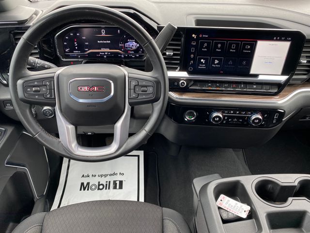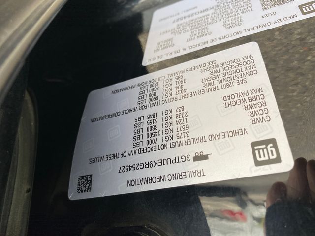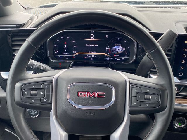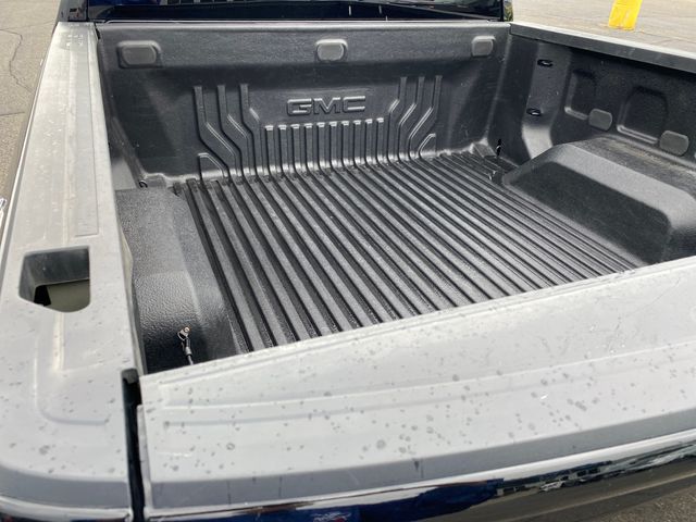 Navigation System, 10-Way Power Driver Seat Adjuster w/Lumbar, 120-Volt Bed Mounted Power Outlet, 120-Volt Interior Power Outlet, 2 Charge/Data USB Ports, 2 Type-C Charge-Only Rear USB Ports, 220 Amp Alternator, 3.42 Rear Axle Ratio, 4-Way Manual Passenger Seat Adjuster, 4-Wheel Disc Brakes, 6 Speakers, 6-Speaker Audio System Feature, ABS brakes, Air Conditioning, Alloy wheels, AM/FM radio: SiriusXM with 360L, Apple CarPlay/Android Auto, Auto High-beam Headlights, Auto-Locking Rear Differential, Automatic Emergency Braking, Automatic temperature control, Body Color Header w/Gloss Black Mesh Grille Bars, Brake assist, Buckle to Drive, Bumpers: body-color, Cloth Seat Trim, Color-Keyed Carpeting Floor Covering, Compass, Deep-Tinted Glass, Delay-off headlights, Driver door bin, Driver vanity mirror, Dual front impact airbags, Dual front side impact airbags, Electric Rear-Window Defogger, Electronic Stability Control, Following Distance Indicator, Forward Collision Alert, Front 40/20/40 Split-Bench Seat, Front anti-roll bar, Front Center Armrest w/Storage, Front dual zone A/C, Front fog lights, Front Frame-Mounted Black Recovery Hooks, Front Pedestrian Braking, Front reading lights, Front Rubberized-Vinyl Floor Mats, Front wheel independent suspension, Fully automatic headlights, Genuine wood dashboard insert, GMC Connected Access Capable, HD Rear Vision Camera, Heated door mirrors, Heated Driver & Front Outboard Passenger Seating, Heated front seats, Heated steering wheel, High Capacity Suspension Package, Hitch Guidance, Illuminated entry, IntelliBeam Automatic High Beam On/Off, Keyless Open & Start, Lane Keep Assist w/Lane Departure Warning, LED Cargo Area Lighting, Low tire pressure warning, Manual Tilt-Wheel & Telescoping Steering Column, Occupant sensing airbag, OnStar & GMC Connected Services Capable, Outside temperature display, Overhead airbag, Overhead console, Panic alarm, Passenger door bin, Passenger vanity mirror, Power Door Locks, Power door mirrors, Power driver seat, Power Front Windows w/Driver Express Up/Down, Power Front Windows w/Passenger Express Down, Power Rear Windows w/Express Down, Power steering, Power windows, Preferred Equipment Group 3VL, Premium audio system: GMC Infotainment System, Push Button Start, Radio data system, Radio: Premium GMC Infotainment Audio System, Rear reading lights, Rear Rubberized-Vinyl Floor Mats, Rear seat center armrest, Rear step bumper, Rear window defroster, Remote keyless entry, Remote Vehicle Starter System, Security system, SiriusXM w/360L, Speed control, Speed-sensing steering, Split folding rear seat, Standard Tailgate, Steering Wheel Audio Controls, Steering wheel mounted audio controls, Tachometer, Telescoping steering wheel, Theft Deterrent System (Unauthorized Entry), Tilt steering wheel, Traction control, Trailering Package, Trip computer, Variably intermittent wipers, Voltmeter, Wheels: 20" x 9" High Gloss Black Painted Aluminum, Wi-Fi Hotspot Capable, Wireless Apple CarPlay/Wireless Android Auto, Navigation System.