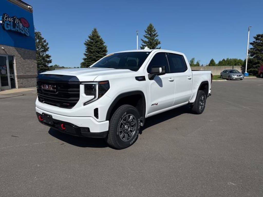 10-Way Power Driver Seat Adjuster w/Lumbar, 10-Way Power Passenger Seat Adjuster w/Lumbar, 120-Volt Bed Mounted Power Outlet, 120-Volt Interior Power Outlet, 18" x 8.5" Machined Aluminum Wheels, 2 Charge/Data USB Ports Inside Center Console, 2 Type-C Charge-Only Rear USB Ports, 2 USB Ports, 220 Amp Alternator, 3.23 Rear Axle Ratio, 4-Wheel Disc Brakes, 7 Speakers, ABS brakes, Air Conditioning, Alloy wheels, AM/FM radio: SiriusXM with 360L, Apple CarPlay/Android Auto, AT4 Preferred Package, Auto High-beam Headlights, Auto-dimming door mirrors, Auto-dimming Rear-View mirror, Auto-Locking Rear Differential, Automatic Emergency Braking, Automatic temperature control, Black Chrome Header & Grille Insert Bars, Block heater, Brake assist, Buckle to Drive, Bumpers: body-color, Color-Keyed Carpeting Floor Covering, Compass, Deep-Tinted Glass, Delay-off headlights, Driver door bin, Driver Memory, Driver vanity mirror, Dual front impact airbags, Dual front side impact airbags, Electric Rear-Window Defogger, Electronic Stability Control, Engine Block Heater, Floor-Mounted Center Console, Following Distance Indicator, Forward Collision Alert, Front anti-roll bar, Front Bucket Seats, Front Center Armrest, Front dual zone A/C, Front fog lights, Front License Plate Kit, Front Pedestrian Braking, Front Prem Floor Liners w/Removable Carpet Insert, Front Rain-Sensing Wipers, Front reading lights, Front wheel independent suspension, Fully automatic headlights, GMC Connected Access Capable, HD Surround Vision, Heated 2nd Row Outboard Seats, Heated door mirrors, Heated Driver & Front Outboard Passenger Seating, Heated front seats, Heated rear seats, Heated steering wheel, Heavy-Duty Air Filter, Hill Descent Control, Hitch Guidance, Hitch View, Illuminated entry, In-Vehicle Trailering System App, Integrated Trailer Brake Controller, IntelliBeam Automatic High Beam On/Off, Keyless Open & Start, Lane Keep Assist w/Lane Departure Warning, LED Cargo Area Lighting, Low tire pressure warning, Memory seat, Navigation System, Occupant sensing airbag, Off-Road Suspension, OnStar & GMC Connected Services Capable, Outside temperature display, Overhead airbag, Overhead console, Panic alarm, Passenger door bin, Passenger vanity mirror, Perforated Front Leather Seat Trim, Perimeter Lighting, Power Door Locks, Power door mirrors, Power driver seat, Power Front Passenger Windows w/Express Up/Down, Power Front Windows w/Driver Express Up/Down, Power passenger seat, Power Rake & Telescoping Steering Column, Power Rear Windows w/Express Down, Power Sliding Rear Window w/Rear Defogger, Power steering, Power Sunroof, Power windows, Preferred Equipment Group 4SB, Premium audio system: GMC Infotainment System, Premium Bose 7-Speaker Sound System, Push Button Start, Radio data system, Radio: Premium GMC Infotainment Audio System, Rain sensing wipers, Rear Cross Traffic Braking, Rear Pedestrian Detection, Rear Prem Floor Liners w/Removable Carpet Insert, Rear reading lights, Rear seat center armrest, Rear step bumper, Rear Wheelhouse Liners, Rear window defroster, Red Recovery Hooks, Remote keyless entry, Remote Vehicle Starter System, Safety Alert Seat, Security system, SiriusXM w/360L, Speed control, Speed-sensing steering, Split folding rear seat, Spray-On Pickup Bedliner w/AT4 Logo, Steering Wheel Audio Controls, Steering wheel mounted audio controls, Tachometer, Telescoping steering wheel, Theft Deterrent System (Unauthorized Entry), Tilt steering wheel, Traction control, Trailer Camera Provisions, Trailer Side Blind Zone Alert, Trailering Package, Trip computer, Ultrasonic Front & Rear Park Assist, Universal Home Remote, Variably intermittent wipers, Ventilated Driver & Front Passenger Seats, Ventilated front seats, Voltmeter, Wi-Fi Hotspot Capable, Wireless Apple CarPlay/Wireless Android Auto, Wireless Char