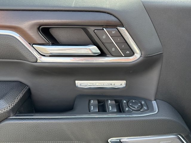 Apple CarPlay/Android Auto, Hitch Guidance, Navigation System, Power Sunroof, Speed control, Trailering Package, 12-Way Power Driver Seat Adjuster w/Lumbar, 12-Way Power Passenger Seat Adjuster w/Lumbar, 120-Volt Bed Mounted Power Outlet, 120-Volt Interior Power Outlet, 170 Amp Alternator, 2 Charge/Data USB Ports Inside Center Console, 2 Type-C Charge-Only Rear USB Ports, 2 USB Ports, 3.23 Rear Axle Ratio, 4-Wheel Disc Brakes, 7 Speakers, ABS brakes, Adaptive suspension, Air Conditioning, Alloy wheels, AM/FM radio: SiriusXM with 360L, Auto High-beam Headlights, Auto-dimming door mirrors, Auto-dimming Rear-View mirror, Auto-Locking Rear Differential, Automatic temperature control, Auxiliary External Transmission Oil Cooler, Bed View Camera, Brake assist, Buckle to Drive, Bumpers: body-color, Chrome Header w/Signature Denali Chrome Grille, Chrome Recovery Hooks, Chrome Wheel To Wheel Assist Steps, Color-Keyed Carpeting Floor Covering, Compass, Deep-Tinted Glass, Delay-off headlights, Denali Premium Suspension w/Adaptive Ride Control, Driver door bin, Driver Memory, Driver vanity mirror, Dual front impact airbags, Dual front side impact airbags, Electric Rear-Window Defogger, Electronic Stability Control, Emergency communication system: OnStar and GMC connected services capable, Enhanced Automatic Emergency Braking, Floor-Mounted Center Console, Following Distance Indicator, Forge Perforated Leather Seat Trim, Forward Collision Alert, Front anti-roll bar, Front Bucket Seats, Front Center Armrest, Front dual zone A/C, Front fog lights, Front Pedestrian Braking, Front Rain-Sensing Wipers, Front reading lights, Front wheel independent suspension, Fully automatic headlights, Garage door transmitter, Genuine wood console insert, Genuine wood dashboard insert, Genuine wood door panel insert, GMC Connected Access Capable, HD Surround Vision, Heated 2nd Row Outboard Seats, Heated door mirrors, Heated Driver & Front Outboard Passenger Seating, Heated front seats, Heated rear seats, Heated steering wheel, Heavy-Duty Air Filter, Hill Descent Control, Hitch View, Illuminated entry, In-Vehicle Trailering System App, Integrated Trailer Brake Controller, IntelliBeam Automatic High Beam On/Off, Keyless Open & Start, Lane Keep Assist w/Lane Departure Warning, LED Cargo Area Lighting, Low tire pressure warning, Memory seat, Occupant sensing airbag, OnStar & GMC Connected Services Capable, Outside temperature display, Overhead airbag, Overhead console, Panic alarm, Passenger door bin, Passenger vanity mirror, Perimeter Lighting, Power Door Locks, Power door mirrors, Power driver seat, Power Front Passenger Windows w/Express Up/Down, Power Front Windows w/Driver Express Up/Down, Power passenger seat, Power Rake & Telescoping Steering Column, Power Rear Windows w/Express Down, Power Sliding Rear Window w/Rear Defogger, Power steering, Power windows, Premium audio system: GMC Infotainment System, Premium Bose 7-Speaker Sound System, Push Button Start, Radio data system, Radio: Premium GMC Infotainment Audio System, Rain sensing wipers, Rear Cross Traffic Braking, Rear Pedestrian Detection, Rear reading lights, Rear seat center armrest, Rear step bumper, Rear Wheelhouse Liners, Rear window defroster, Remote keyless entry, Remote Vehicle Starter System, Safety Alert Seat, Security system, SiriusXM w/360L, Speed-sensing steering, Split folding rear seat, Spray-On Pickup Bedliner w/Denali Logo, Steering Wheel Audio Controls, Steering wheel mounted audio controls, Tachometer, Telescoping steering wheel, Theft Deterrent System (Unauthorized Entry), Tilt steering wheel, Traction control, Trailer Camera Provisions, Trailer Side Blind Zone Alert, Trip computer, Ultrasonic Front & Rear Park Assist, Universal Home Remote, Variably intermittent wipers, Ventil
