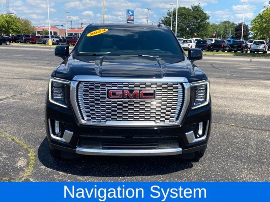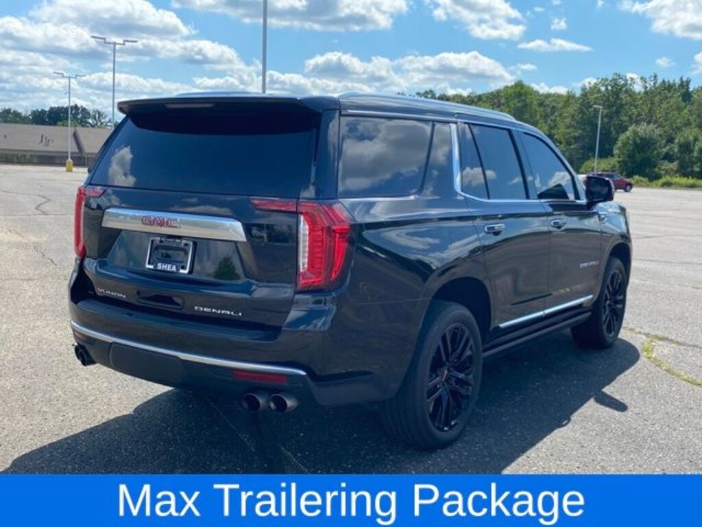 Max Trailering Package, Navigation System, 12-Way Power Seat Adjusters, 14 Speakers, 15" Diagonal Multi-Color Head-Up Display, 2 Presets For Outside Rearview Mirrors, 3.23 Rear Axle Ratio, 3rd Row 60/40 Power-Folding Split-Bench Seat, 3rd row seats: split-bench, 4-Wheel Disc Brakes, ABS brakes, Adaptive Cruise Control, Adaptive suspension, Air Conditioning, Alloy wheels, AM/FM radio: SiriusXM with 360L, AM/FM Stereo, Apple CarPlay/Android Auto, Auto High-beam Headlights, Auto-dimming door mirrors, Auto-dimming Rear-View mirror, Auto-leveling suspension, Automatic Emergency Braking, Automatic temperature control, Bodyside moldings, Bose 14-Speaker Surround w/CenterPoint, Brake assist, Bright Front & Rear Door Sill Plates, Bumpers: body-color, Chrome Door Handles w/Body-Color Strip, Compass, Delay-off headlights, Driver door bin, Driver vanity mirror, Dual Exhaust System, Dual front impact airbags, Dual front side impact airbags, Dual-Pane Panoramic Power Sunroof, Electronic Stability Control, Emergency communication system: OnStar and GMC connected services capable, Enhanced Automatic Emergency Braking, Extra Capacity Cooling System, Floor Console, Following Distance Indicator, Forward Collision Alert, Four wheel independent suspension, Front & Rear Park Assist, Front anti-roll bar, Front Bucket Seats, Front Center Armrest, Front dual zone A/C, Front fog lights, Front Pedestrian Braking, Front reading lights, Fully automatic headlights, Galvano Bodyside Moldings, Garage door transmitter, Hands-Free Power Programmable Rear Liftgate, HD Surround Vision, Heads-Up Display, Heated 2nd Row Outboard Position Seats, Heated door mirrors, Heated Driver & Front Passenger Seats, Heated front seats, Heated rear seats, Heated Steering Wheel, Heated steering wheel, Hill Descent Control, Hitch View, Illuminated entry, Inside Rear-View Auto-Dimming Mirror, Integrated Trailer Brake Controller, IntelliBeam Automatic High Beam On/Off, Lane Change Alert w/Side Blind Zone Alert, Lane Keep Assist w/Lane Departure Warning, Low tire pressure warning, Magnetic Ride Control Suspension, Memory seat, Occupant sensing airbag, Outside Heated Power-Adjustable Mirrors, Outside temperature display, Overhead airbag, Overhead console, Panic alarm, Passenger door bin, Passenger vanity mirror, Perforated Heated & Ventilated Dr & Frt Pass Seats, Perforated Leather Seating Surfaces, Power door mirrors, Power driver seat, Power Liftgate, Power passenger seat, Power Release 2nd Row Bucket Seats, Power steering, Power Tilt & Telescopic Steering Column, Power windows, Power-Retractable Assist Steps, Preferred Equipment Group 5SA, Rain sensing wipers, Rear air conditioning, Rear anti-roll bar, Rear Cross Traffic Alert, Rear Pedestrian Alert, Rear reading lights, Rear Seat Media System, Rear window defroster, Rear window wiper, Remote keyless entry, Roof rack: rails only, Safety Alert Seat, Security system, SiriusXM w/360L, Smart Trailer Integration Indicator, Speed control, Speed-sensing steering, Split folding rear seat, Spoiler, Steering wheel memory, Steering wheel mounted audio controls, Tachometer, Telescoping steering wheel, Tilt steering wheel, Traction control, Trailer Side Blind Zone Alert, Trip computer, Turn signal indicator mirrors, Univers