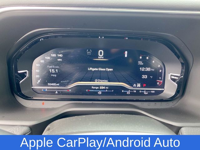 Step inside the Yukon Denali and be greeted by a cabin that exudes luxury and sophistication. Plush, perforated leather seating surfaces, heated and ventilated front seats, and a panoramic sunroof create an unparalleled sense of comfort and refinement. The Bose 14-speaker surround sound system and the intuitive infotainment system with Apple CarPlay and Android Auto integration ensure that you and your passengers are entertained and connected throughout your journey.