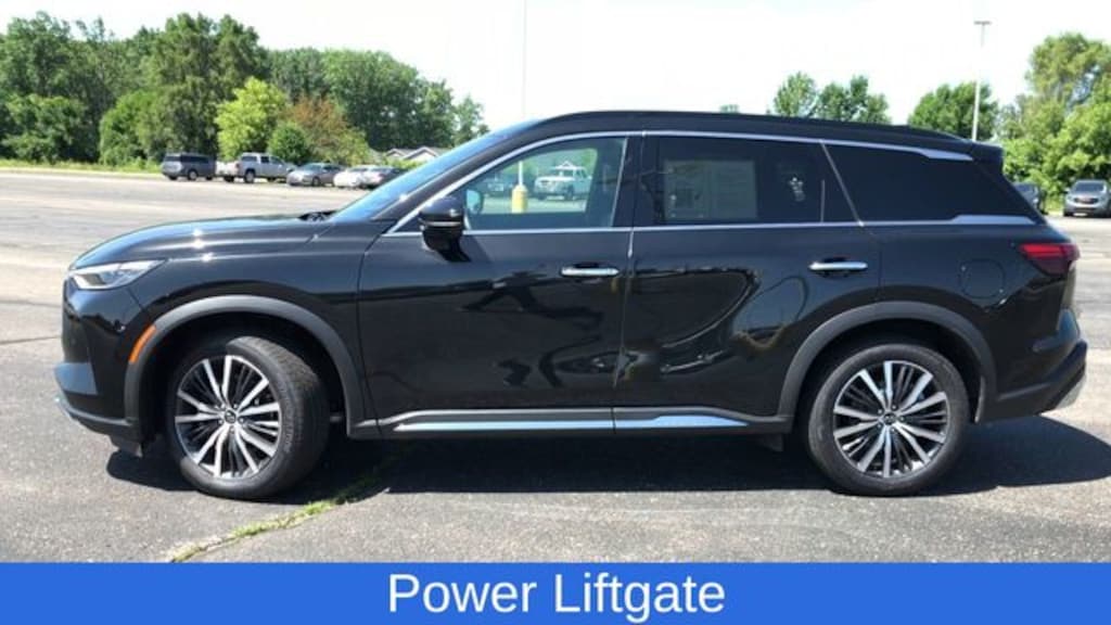 Bose Performance Series 17-Speaker Sound System, Navigation system: INFINITI InTouch Navigation, Power Liftgate, Speed control, Wheels: 20" x 8J Luxury Machined Aluminum Alloy, 17 Speakers, 3rd row seats: bench, 4-Wheel Disc Brakes, 4.334 Axle Ratio, ABS brakes, Air Conditioning, Alloy wheels, AM/FM radio: SiriusXM, Anti-whiplash front head restraints, Auto High-beam Headlights, Auto-dimming door mirrors, Auto-dimming Rear-View mirror, Automatic temperature control, Brake assist, Bumpers: body-color, Delay-off headlights, Driver door bin, Driver vanity mirror, Dual front impact airbags, Dual front side impact airbags, Electronic Stability Control, Emergency communication system, Four wheel independent suspension, Front anti-roll bar, Front Bucket Seats, Front Center Armrest, Front dual zone A/C, Front reading lights, Fully automatic headlights, Garage door transmitter: HomeLink, Heads-Up Display, Heated & Cooled Front Bucket Seats, Heated door mirrors, Heated front seats, Heated rear seats, Heated steering wheel, Illuminated entry, Knee airbag, Leather Shift Knob, Leather steering wheel, Low tire pressure warning, Memory seat, Occupant sensing airbag, Outside temperature display, Overhead airbag, Overhead console, Panic alarm, Passenger door bin, Passenger vanity mirror, Power door mirrors, Power driver seat, Power moonroof, Power passenger seat, Power steering, Power windows, Radio data system, Radio: AM/FM Audio System, Rain sensing wipers, Rear air conditioning, Rear anti-roll bar, Rear reading lights, Rear side impact airbag, Rear window defroster, Rear window wiper, Reclining 3rd row seat, Remote keyless entry, Roof rack: rails only, Security system, Semi Aniline Leather Seating Surfaces, Speed-sensing steering, Speed-Sensitive Wipers, Split folding rear seat, Spoiler, Steering wheel memory, Steering wheel mounted audio controls, Tachometer, Telescoping steering wheel, Tilt steering wheel, Traction control, Trip computer, Turn signal indicator mirrors, Variably intermittent wipers, Ventilated front seats, Bose Performance Series 17-Speaker Sound System, Navigation system: INFINITI InTouch Navigation, Power Liftgate, Speed control, Wheels: 20" x 8J Luxury Machined Aluminum Alloy.