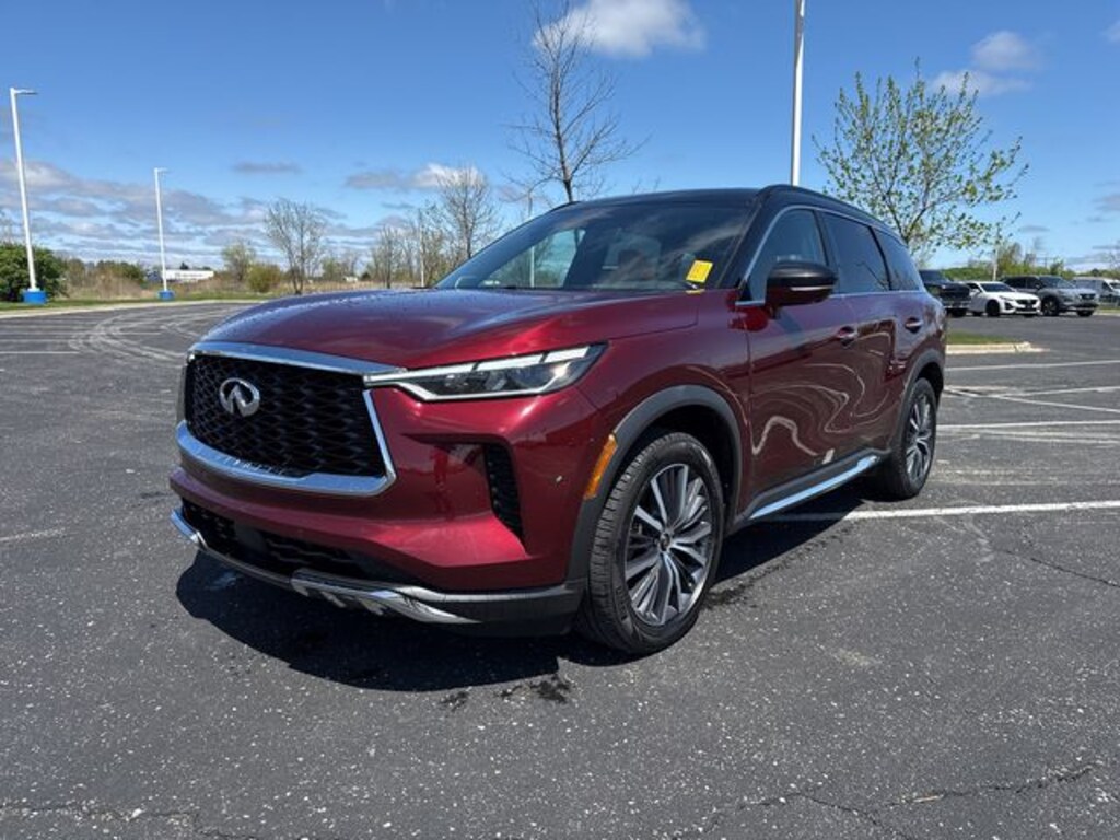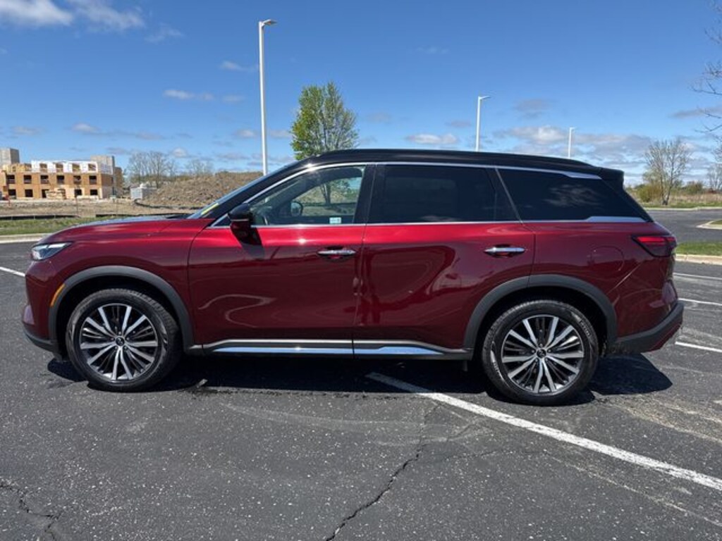 17 Speakers, 3rd row seats: bench, 4-Wheel Disc Brakes, 4.334 Axle Ratio, ABS brakes, Air Conditioning, Alloy wheels, AM/FM radio: SiriusXM, Anti-whiplash front head restraints, Auto High-beam Headlights, Auto-dimming door mirrors, Auto-dimming Rear-View mirror, Automatic temperature control, Bose Performance Series 17-Speaker Sound System, Brake assist, Bumpers: body-color, Delay-off headlights, Driver door bin, Driver vanity mirror, Dual front impact airbags, Dual front side impact airbags, Electronic Stability Control, Emergency communication system, Four wheel independent suspension, Front anti-roll bar, Front Bucket Seats, Front Center Armrest, Front dual zone A/C, Front reading lights, Fully automatic headlights, Garage door transmitter: HomeLink, Heads-Up Display, Heated & Cooled Front Bucket Seats, Heated door mirrors, Heated front seats, Heated rear seats, Heated steering wheel, Illuminated entry, Knee airbag, Leather Shift Knob, Leather steering wheel, Low tire pressure warning, Memory seat, Navigation system: INFINITI InTouch Navigation, Occupant sensing airbag, Outside temperature display, Overhead airbag, Overhead console, Panic alarm, Passenger door bin, Passenger vanity mirror, Power door mirrors, Power driver seat, Power Liftgate, Power moonroof, Power passenger seat, Power steering, Power windows, Radio data system, Radio: AM/FM Audio System, Rain sensing wipers, Rear air conditioning, Rear anti-roll bar, Rear reading lights, Rear side impact airbag, Rear window defroster, Rear window wiper, Reclining 3rd row seat, Remote keyless entry, Roof rack: rails only, Security system, Semi Aniline Leather Seating Surfaces, Speed control, Speed-sensing steering, Speed-Sensitive Wipers, Split folding rear seat, Spoiler, Steering wheel memory, Steering wheel mounted audio controls, Tachometer, Telescoping steering wheel, Tilt steering wheel, Traction control, Trip computer, Turn signal indicator mirrors, Variably intermittent wipers, Ventilated front seats, Wheels: 20" x 8J Luxury Machined Aluminum Alloy.