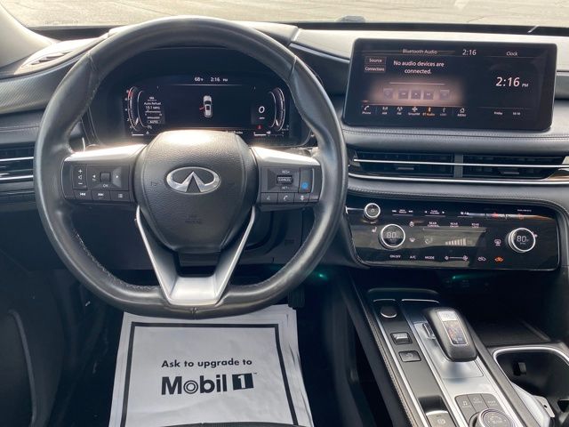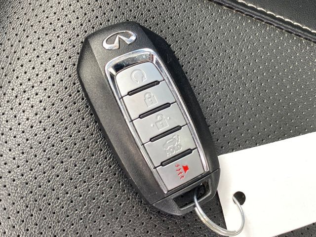 Navigation system: INFINITI InTouch Navigation, 3rd row seats: bench, 4-Wheel Disc Brakes, 4.334 Axle Ratio, 9 Speakers, ABS brakes, Air Conditioning, Alloy wheels, AM/FM radio: SiriusXM, Anti-whiplash front head restraints, Auto High-beam Headlights, Auto-dimming door mirrors, Auto-dimming Rear-View mirror, Automatic temperature control, Brake assist, Bumpers: body-color, Climate-Controlled Front Bucket Seats, Delay-off headlights, Driver door bin, Driver vanity mirror, Dual front impact airbags, Dual front side impact airbags, Electronic Stability Control, Emergency communication system, Four wheel independent suspension, Front anti-roll bar, Front Bucket Seats, Front Center Armrest, Front dual zone A/C, Front reading lights, Fully automatic headlights, Garage door transmitter: HomeLink, Heated door mirrors, Heated front seats, Heated steering wheel, Illuminated entry, Knee airbag, Leather Shift Knob, Leather steering wheel, Leather-Appointed Seating Surfaces, Low tire pressure warning, Memory seat, Occupant sensing airbag, Outside temperature display, Overhead airbag, Overhead console, Panic alarm, Passenger door bin, Passenger vanity mirror, Power door mirrors, Power driver seat, Power Liftgate, Power moonroof, Power passenger seat, Power steering, Power windows, Radio data system, Radio: AM/FM Audio System, Rain sensing wipers, Rear air conditioning, Rear anti-roll bar, Rear reading lights, Rear seat center armrest, Rear side impact airbag, Rear window defroster, Rear window wiper, Reclining 3rd row seat, Remote keyless entry, Security system, Speed control, Speed-sensing steering, Speed-Sensitive Wipers, Split folding rear seat, Spoiler, Steering wheel memory, Steering wheel mounted audio controls, Tachometer, Telescoping steering wheel, Tilt steering wheel, Traction control, Trip computer, Turn signal indicator mirrors, Variably intermittent wipers, Ventilated front seats, Wheels: 20" x 8J Sporty Machined Aluminum Alloy, Navigation system: INFINITI InTouch Navigation.