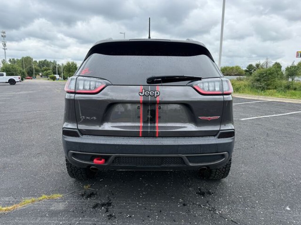 3.517 Axle Ratio, 4-Wheel Disc Brakes, 6 Speakers, 8.4" Touchscreen Display, ABS brakes, Air Conditioning, Alloy wheels, AM/FM radio: SiriusXM, Anti-whiplash front head restraints, Apple CarPlay, Apple CarPlay/Android Auto, Automatic temperature control, AutoStick Automatic Transmission, Auxiliary Transmission Oil Cooler, Brake assist, Cloth/Premium Vinyl Bucket Seats, Cold Weather Group, Compass, Delay-off headlights, Driver door bin, Driver vanity mirror, Dual Bright Exhaust Tips, Dual front impact airbags, Dual front side impact airbags, Electronic Stability Control, Engine Block Heater, Engine Oil Cooler, Exterior Mirrors Courtesy Lamps, Exterior Mirrors w/Supplemental Signals, Four wheel independent suspension, Front anti-roll bar, Front Bucket Seats, Front Center Armrest, Front dual zone A/C, Front fog lights, Front reading lights, Fully automatic headlights, Google Android Auto, GPS Antenna Input, Heated door mirrors, Heated Front Seats, Heated Steering Wheel, Hill Descent Control, Illuminated entry, Integrated Voice Command w/Bluetooth, Knee airbag, Leather Shift Knob, Low tire pressure warning, Occupant sensing airbag, Off Road Suspension, Outside temperature display, Overhead airbag, Overhead console, Panic alarm, ParkView Rear Back-Up Camera, Passenger door bin, Passenger vanity mirror, Power door mirrors, Power driver seat, Power steering, Power windows, Quick Order Package 27E Trailhawk, Radio data system, Radio: Uconnect 4 w/8.4" Display, Rear anti-roll bar, Rear reading lights, Rear seat center armrest, Rear side impact airbag, Rear window defroster, Rear window wiper, Remote keyless entry, Roof rack: rails only, SiriusXM Satellite Radio, Speed control, Speed-sensing steering, Split folding rear seat, Spoiler, Steering wheel mounted audio controls, Stop-Start Multiple VSM System, Tachometer, Telescoping steering wheel, Tilt steering wheel, Traction control, Trip computer, Turn signal indicator mirrors, USB Host Flip, Variably intermittent wipers, Voltmeter, Wheels: 17" x 7.5" Painted/Polished Aluminum, Windshield Wiper De-Icer.