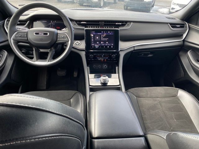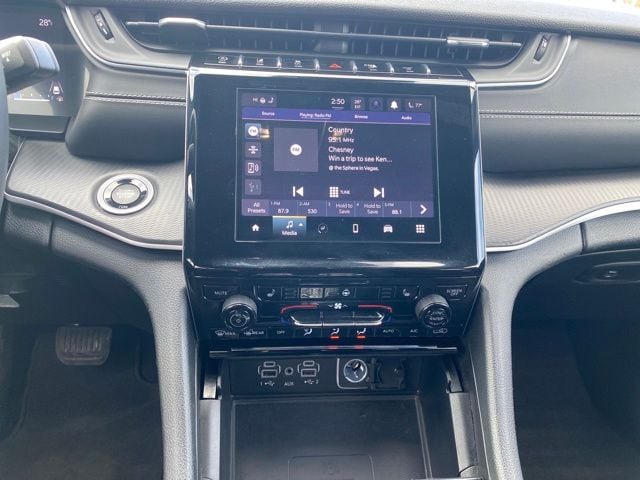 Altitude Appearance Package, 115V Auxiliary Power Outlet, 3.45 Rear Axle Ratio, 3rd Row Charge-Only USB Ports, 3rd row seats: split-bench, 4-Wheel Disc Brakes, 6 Speakers, ABS brakes, Air Conditioning, Alloy wheels, Anti-whiplash front head restraints, Automatic temperature control, Black Headliner, Brake assist, Bumpers: body-color, Capri Leatherette/Suede Seats, Cloth Seats, Compass, Delay-off headlights, Delete Laredo Badge, Driver door bin, Driver vanity mirror, Dual front impact airbags, Dual front side impact airbags, Electronic Stability Control, Emergency communication system, Four wheel independent suspension, Front anti-roll bar, Front Bucket Seats, Front Center Armrest w/Storage, Front dual zone A/C, Front License Plate Bracket, Front reading lights, Fully automatic headlights, Gloss Black Exterior Accents, Heated door mirrors, Heated Front Seats, Heated Steering Wheel, Illuminated entry, Knee airbag, Low tire pressure warning, Manual Fold Seatbacks, Molded In Color Black/Gloss Black Roof Rails, Normal Duty Suspension, Occupant sensing airbag, Outside temperature display, Overhead airbag, Overhead console, Panic alarm, ParkView Rear Back-Up Camera, Passenger door bin, Passenger vanity mirror, Power door mirrors, Power driver seat, Power Liftgate, Power steering, Power windows, Quick Order Package 23B Altitude, Radio data system, Radio: Uconnect 5 w/8.4" Display, Rain Sensitive Windshield Wipers, Rear air conditioning, Rear anti-roll bar, Rear reading lights, Rear window defroster, Rear window wiper, Reclining 3rd row seat, Remote keyless entry, Remote Start System, Security system, Selectable Tire Fill Alert, Speed control, Speed-Sensitive Wipers, Split folding rear seat, Spoiler, Steering wheel mounted audio controls, Tachometer, Telescoping steering wheel, Tilt steering wheel, Traction control, Trip computer, Variably intermittent wipers, Voltmeter, Wheels: 18" x 8.0" Fully Painted Aluminum, Wheels: 18" x 8.0" Fully Painted Aluminum 1, Wheels: 20" x 8.5" Gloss Black Painted Aluminum, Wireless Charging Pad, Altitude Appearance Package.