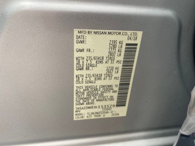 Navigation System, 11 Speakers, 4-Wheel Disc Brakes, 4.667 Axle Ratio, ABS brakes, Air Conditioning, Alloy wheels, AM/FM radio: SiriusXM, AM/FM/CD/MP3/WMA Audio System, Apple CarPlay/Android Auto, Auto-dimming Rear-View mirror, Automatic temperature control, Blind Spot Warning, Brake assist, Bumpers: body-color, Carpeted Floor Mats & Carpeted Cargo Mat, CD player, Child-Seat-Sensing Airbag, Compass, Delay-off headlights, Driver door bin, Driver vanity mirror, Dual front impact airbags, Dual front side impact airbags, Electronic Stability Control, Four wheel independent suspension, Front anti-roll bar, Front Bucket Seats, Front Center Armrest, Front dual zone A/C, Front fog lights, Front reading lights, Fully automatic headlights, Garage door transmitter: HomeLink, Heated door mirrors, Heated Front Bucket Seats, Heated front seats, Heated rear seats, Heated steering wheel, Illuminated entry, Knee airbag, Leather Appointed Seat Trim, Leather Shift Knob, Low tire pressure warning, Memory seat, Moonroof Package, Occupant sensing airbag, Outside temperature display, Overhead airbag, Overhead console, Panic alarm, Passenger door bin, Passenger vanity mirror, Power door mirrors, Power driver seat, Power Liftgate, Power Panoramic Moonroof, Power passenger seat, Power steering, Power windows, Radio data system, Rear anti-roll bar, Rear reading lights, Rear seat center armrest, Rear window defroster, Rear window wiper, Remote keyless entry, Roof rack: rails only, Security system, Speed control, Speed-sensing steering, Speed-Sensitive Wipers, Splash Guards, Split folding rear seat, Spoiler, Steering wheel mounted audio controls, Tachometer, Telescoping steering wheel, Tilt steering wheel, Traction control, Trip computer, Turn signal indicator mirrors, Variably intermittent wipers, Wheels: 18" Machined Aluminum-Alloy, Navigation System.