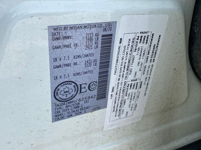 Radio: AM/FM/CD Audio System w/NissanConnect, Speed control, 3rd row seats: bench, 4-Wheel Disc Brakes, 5.25 Axle Ratio, 6 Speakers, ABS brakes, Air Conditioning, Alloy wheels, AM/FM radio: SiriusXM, Automatic temperature control, Brake assist, Bumpers: body-color, CD player, Cloth Seating Surfaces, Delay-off headlights, Driver door bin, Driver vanity mirror, Dual front impact airbags, Dual front side impact airbags, Electronic Stability Control, Four wheel independent suspension, Front anti-roll bar, Front Bucket Seats, Front Center Armrest, Front dual zone A/C, Front reading lights, Illuminated entry, Low tire pressure warning, Occupant sensing airbag, Outside temperature display, Overhead airbag, Overhead console, Panic alarm, Passenger door bin, Passenger vanity mirror, Power door mirrors, Power steering, Power windows, Radio data system, Rear air conditioning, Rear anti-roll bar, Rear Parking Sensors, Rear reading lights, Rear seat center armrest, Rear window defroster, Rear window wiper, Reclining 3rd row seat, Remote keyless entry, Security system, Speed-sensing steering, Split folding rear seat, Spoiler, Steering wheel mounted audio controls, Tachometer, Telescoping steering wheel, Tilt steering wheel, Traction control, Trip computer, Turn signal indicator mirrors, Variably intermittent wipers, Wheels: 18" x 7.5 J Machined Aluminum-Alloy, Radio: AM/FM/CD Audio System w/NissanConnect, Speed control.