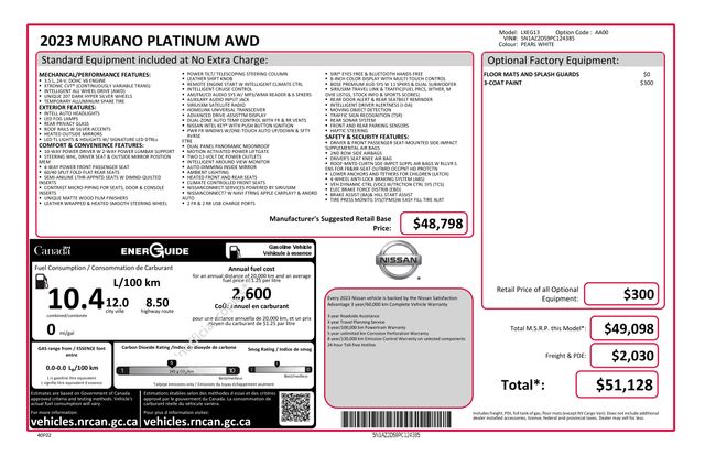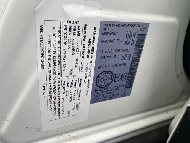 AM/FM/CD/MP3/WMA Audio System, Exterior Parking Camera Rear, Navigation system: NissanConnect Navigation, NissanConnect featuring Apple CarPlay and Android Auto, NissanConnect Services Powered By SiriusXM, Power Liftgate, Speed control, 11 Speakers, 4-Wheel Disc Brakes, 4.667 Axle Ratio, ABS brakes, Air Conditioning, Alloy wheels, AM/FM radio: SiriusXM, Auto High-beam Headlights, Auto tilt-away steering wheel, Auto-dimming Rear-View mirror, Automatic temperature control, Blind Spot Warning, Brake assist, Bumpers: body-color, CD player, Child-Seat-Sensing Airbag, Delay-off headlights, Driver door bin, Driver vanity mirror, Dual front impact airbags, Dual front side impact airbags, Electronic Stability Control, Emergency communication system: NissanConnect Services (first 6 months included), Four wheel independent suspension, Front anti-roll bar, Front Bucket Seats, Front Center Armrest, Front dual zone A/C, Front fog lights, Front reading lights, Fully automatic headlights, Garage door transmitter: HomeLink, Heated & Ventilated Front Bucket Seats, Heated door mirrors, Heated front seats, Heated rear seats, Heated steering wheel, Illuminated entry, Knee airbag, Low tire pressure warning, Memory seat, Occupant sensing airbag, Outside temperature display, Overhead airbag, Overhead console, Panic alarm, Passenger door bin, Passenger vanity mirror, Power door mirrors, Power driver seat, Power moonroof, Power passenger seat, Power steering, Power windows, Premium audio system: Bose, Radio data system, Rear anti-roll bar, Rear reading lights, Rear seat center armrest, Rear side impact airbag, Rear window defroster, Rear window wiper, Remote keyless entry, Security system, Semi-Aniline Leather-Appointed Seat Trim, Speed-sensing steering, Speed-Sensitive Wipers, Split folding rear seat, Spoiler, Steering wheel memory, Steering wheel mounted audio controls, Tachometer, Telescoping steering wheel, Tilt steering wheel, Traction control, Trip computer, Turn signal indicator mirrors, Variably intermittent wipers, Ventilated front seats, Wheels: 20" Unique Dark Hyper Silver, ALL WHEEL DRIVE, AM/FM/CD/MP3/WMA Audio System, Exterior Parking Camera Rear, Navigation system: NissanConnect Navigation, NissanConnect featuring Apple CarPlay and Android Auto, NissanConnect Services Powered By SiriusXM, Power Liftgate, Speed control.