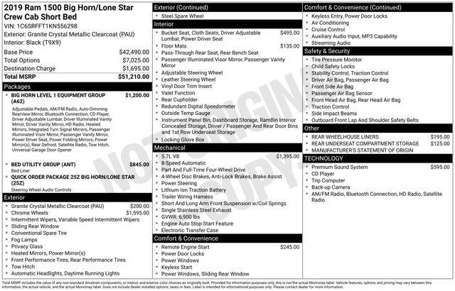 Experience the unparalleled performance, versatility, and comfort of this 2019 Ram 1500 Big Horn/Lone Star. Visit our showroom today and let us demonstrate how this truck can transform the way you work and play.