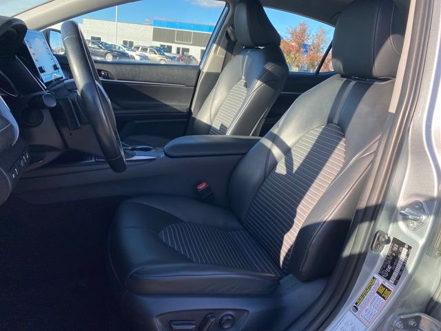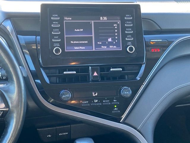 The Camry's spacious and well-appointed interior offers a comfortable and refined driving experience. The sport-inspired SofTex seat trim with fabric inserts adds a touch of sophistication, while the leather-wrapped steering wheel and steering wheel-mounted audio controls provide a premium feel. The advanced infotainment system, complete with Apple CarPlay and Android Auto integration, keeps you connected and entertained on the go.